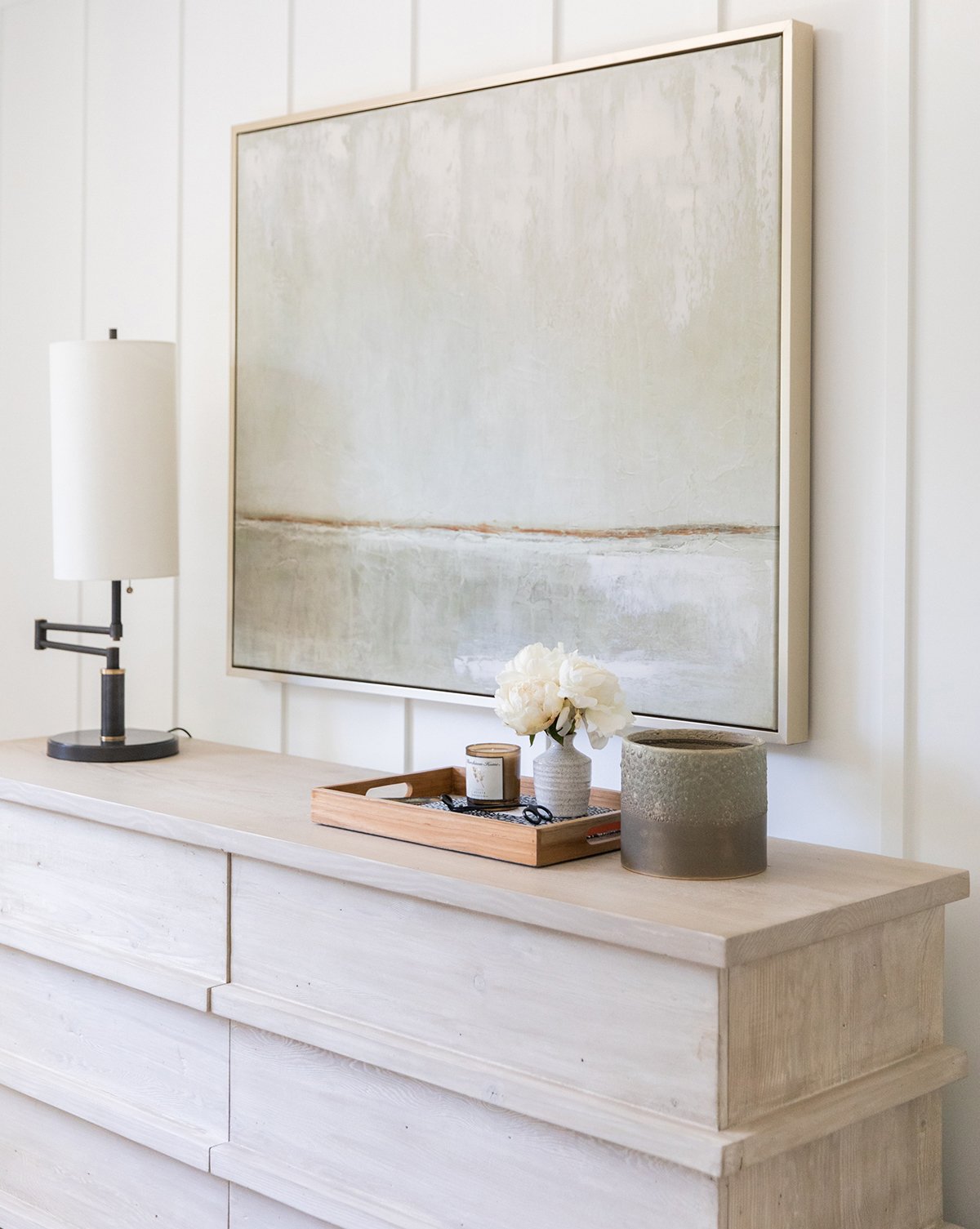 Faded gray and green tones blend together to create the impression of distant Gulf Shores. Use as focal point to base your designs around while adding a serene effect to your home.