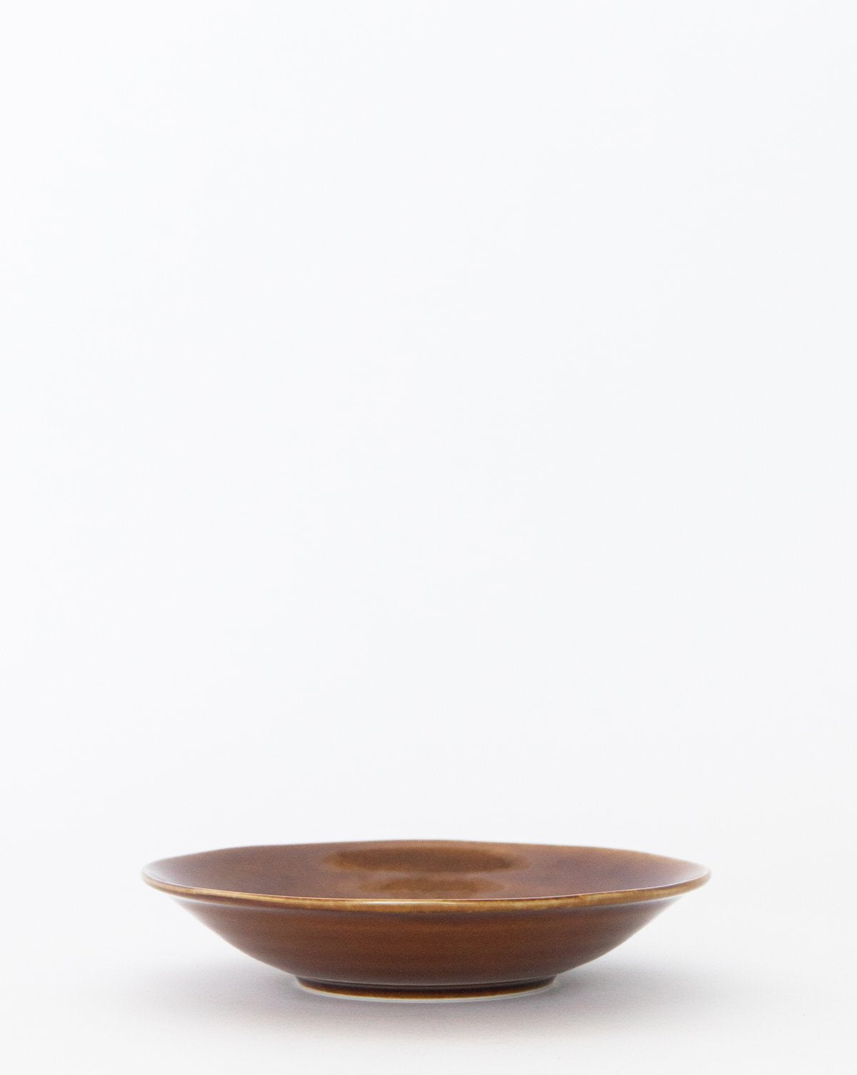Featuring a low profile form and tonal auburn hue, this bowl is a contemporary take on refined style. Fill with produce in your kitchen or fill a shelf on a built-in –– add visual interest to your existing decor with its smooth glazed finish.