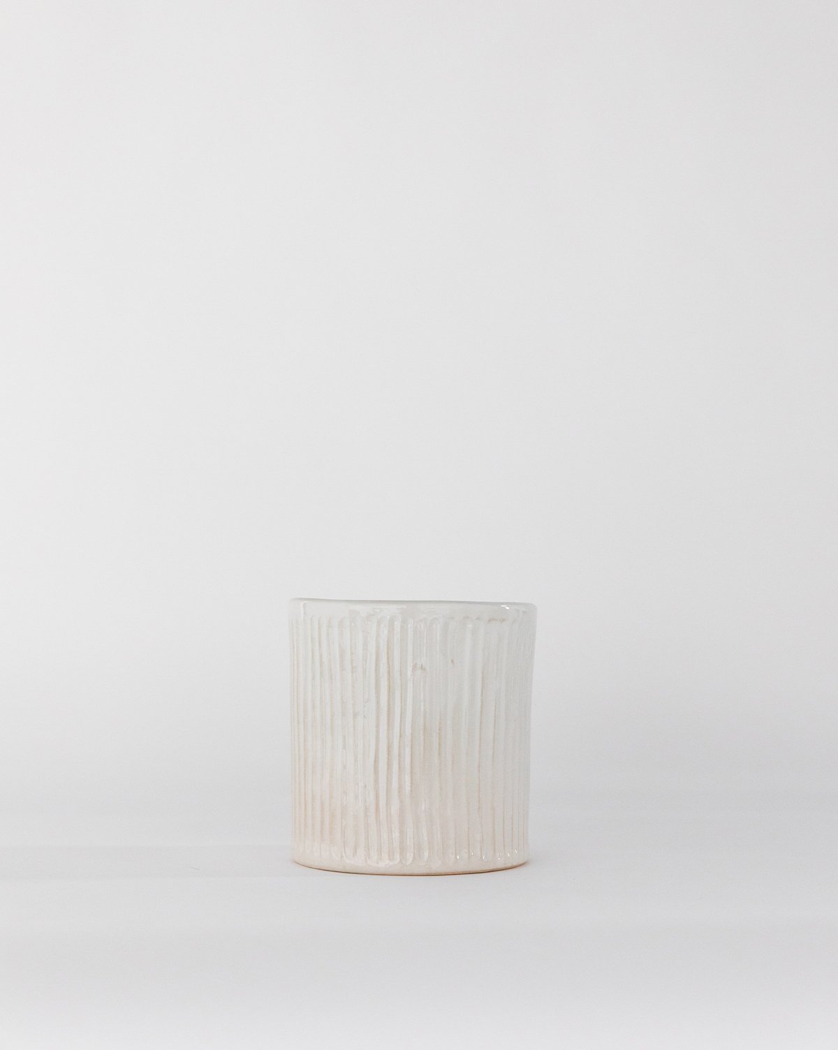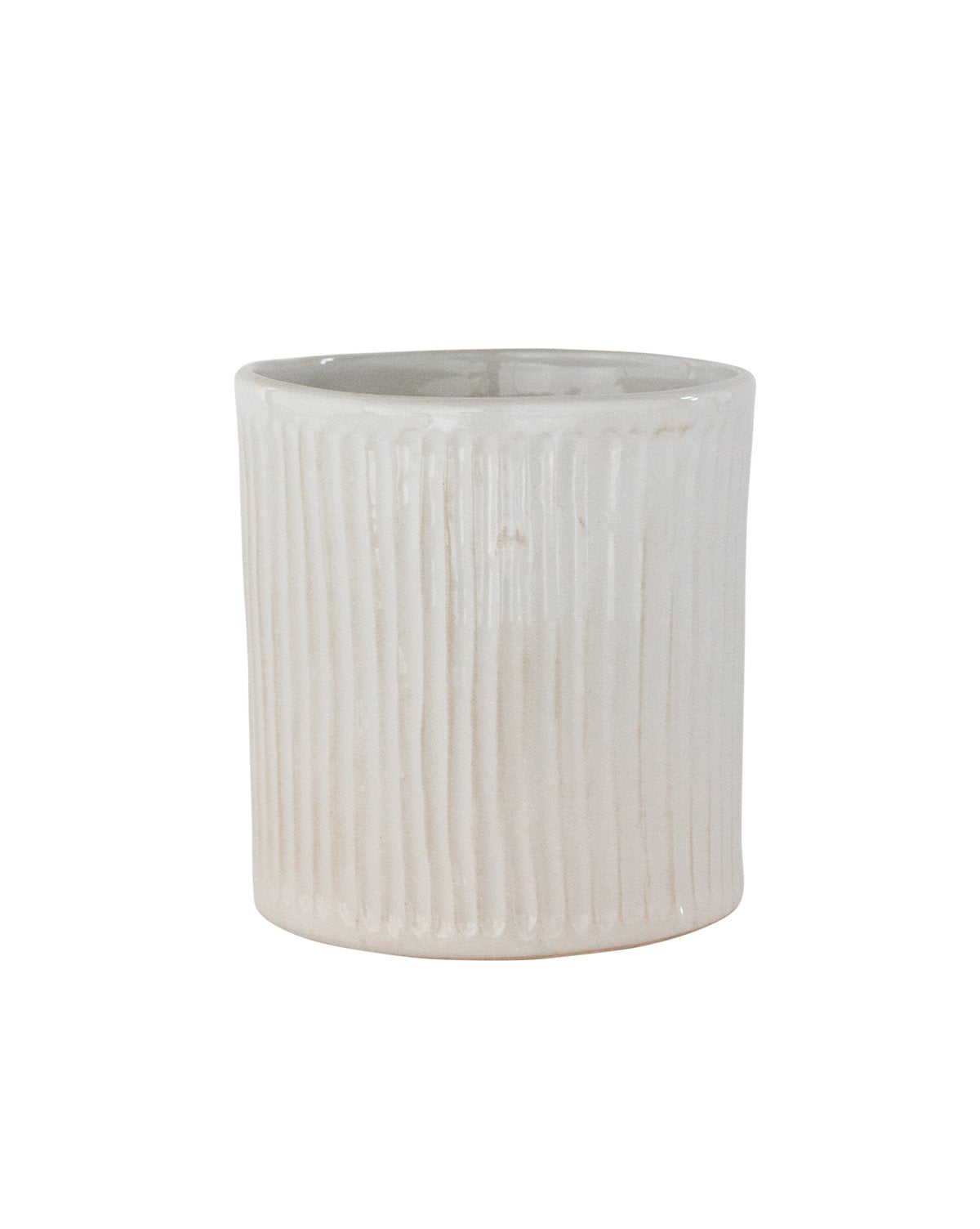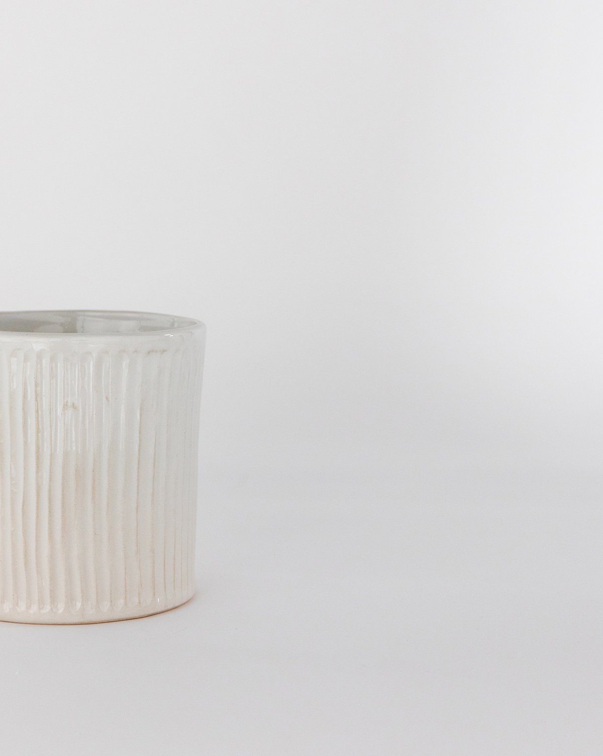 The Glossy White Scalloped Crock is designed to corral your everyday kitchen essentials with ease. Its simple form is crafted with hand-applied imperfect ridges to add character, lending an extra layer of dimension to your kitchen design.