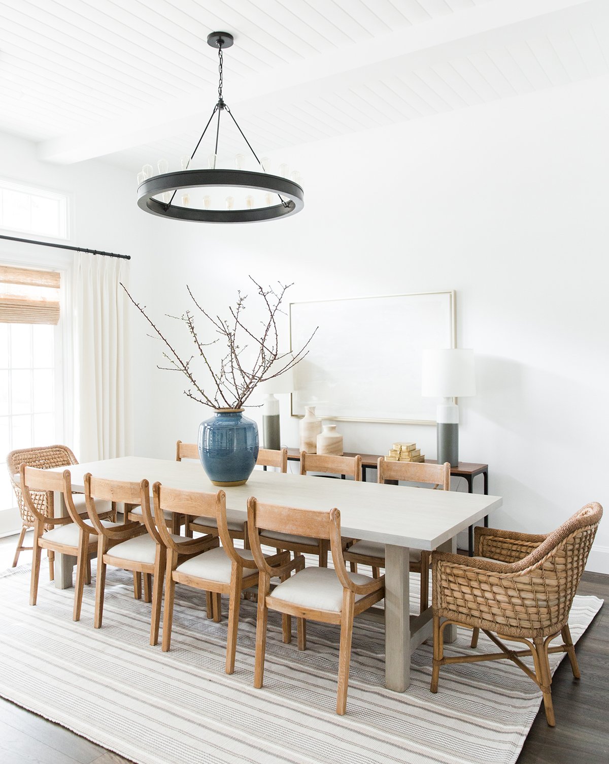 Here’s a neutral rug that keeps things interesting with stripes in various sizes ranging in shades of cream and gray to gunmetal and ivory.