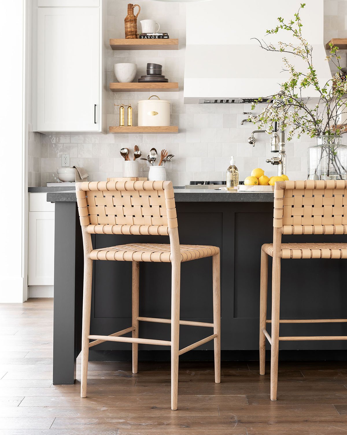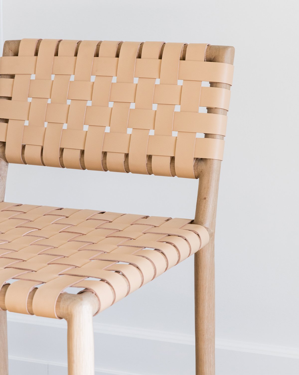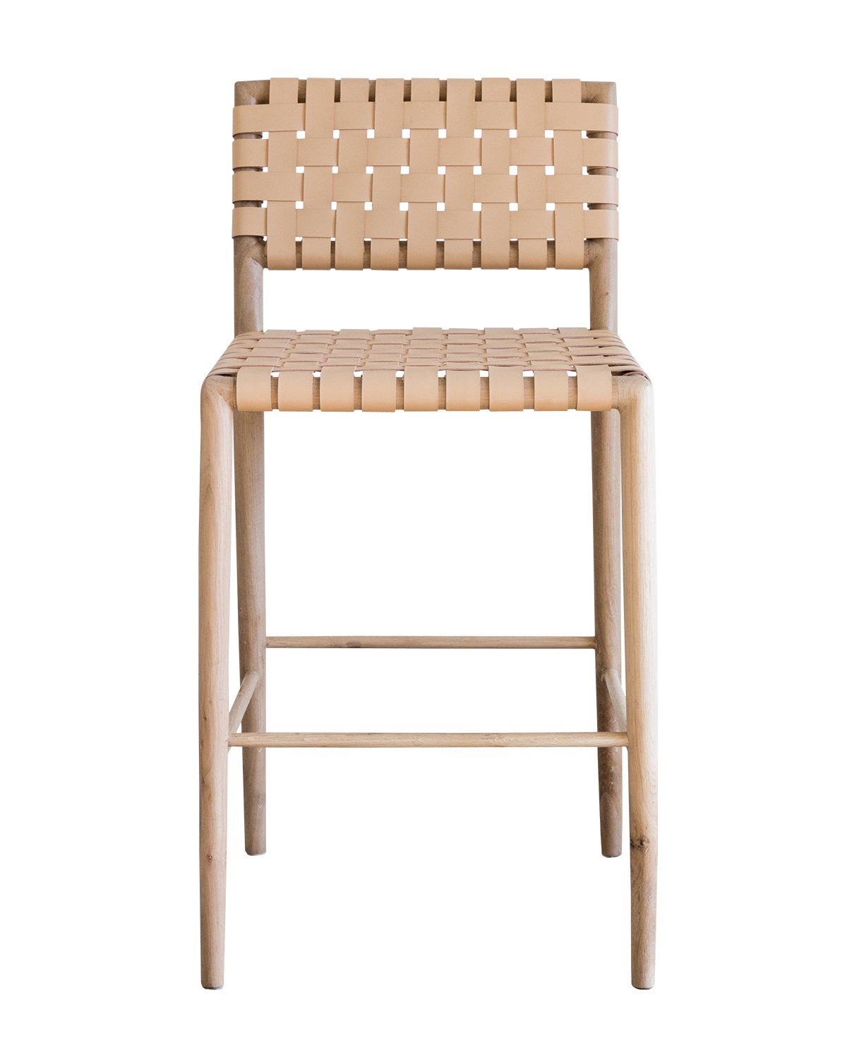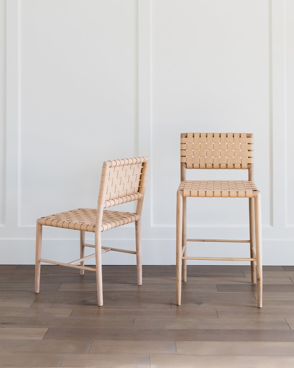 Expertly crafted with acute attention to detail, we designed the Greely Counter Stool with a light and airy, yet sophisticated feel. Woven with aniline dyed leather wrapped around a solid white oak frame featuring slightly tapered legs, this chair instantly elevates your kitchen space with its modern, streamlined silhouette.