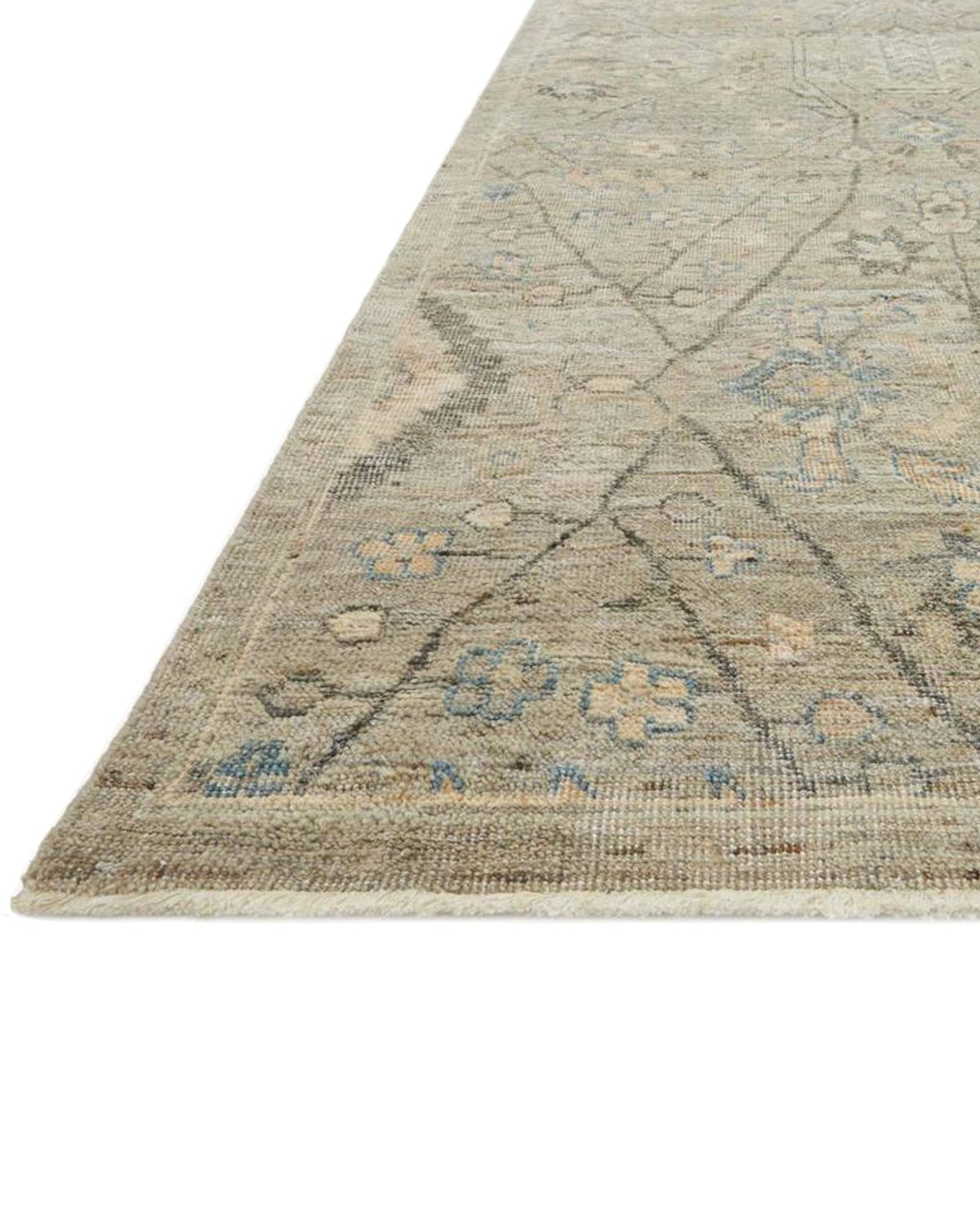 Hand-knotted by skilled artisans in India, our Haarlem Rug is crafted from 100% Wool. Deliberately distressed for a vintage look and feel, its neutral coloring anchors your space with an understated, elegant motif.