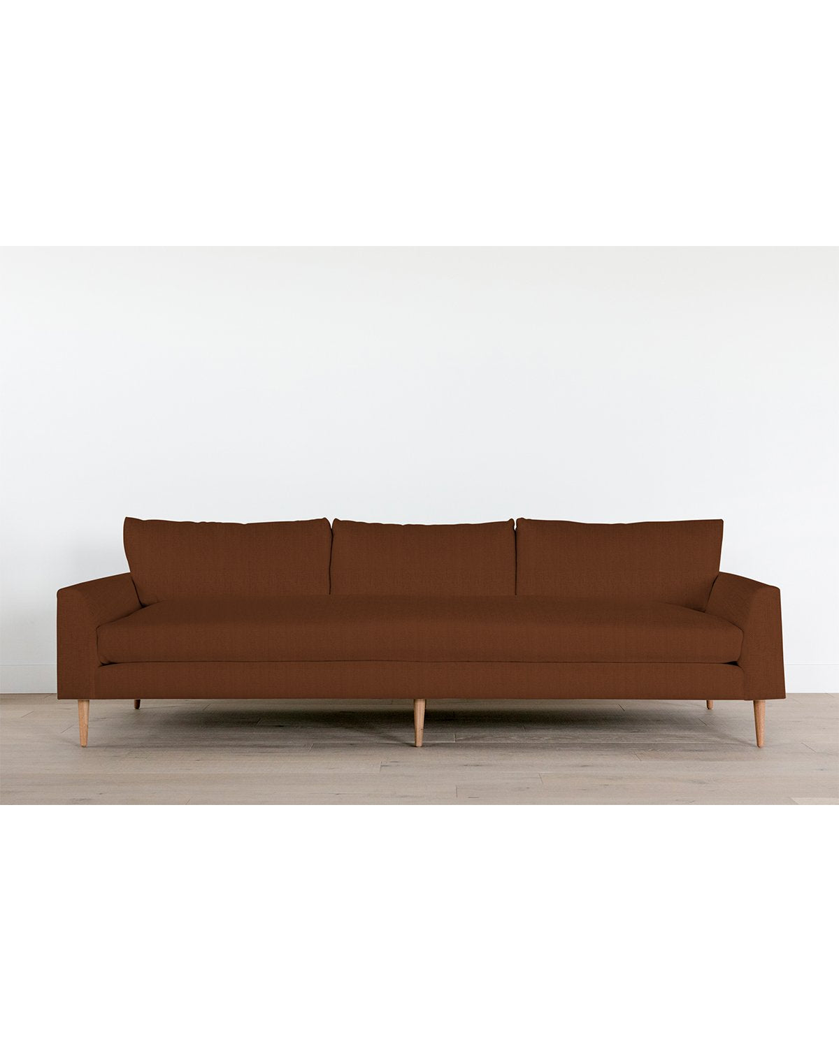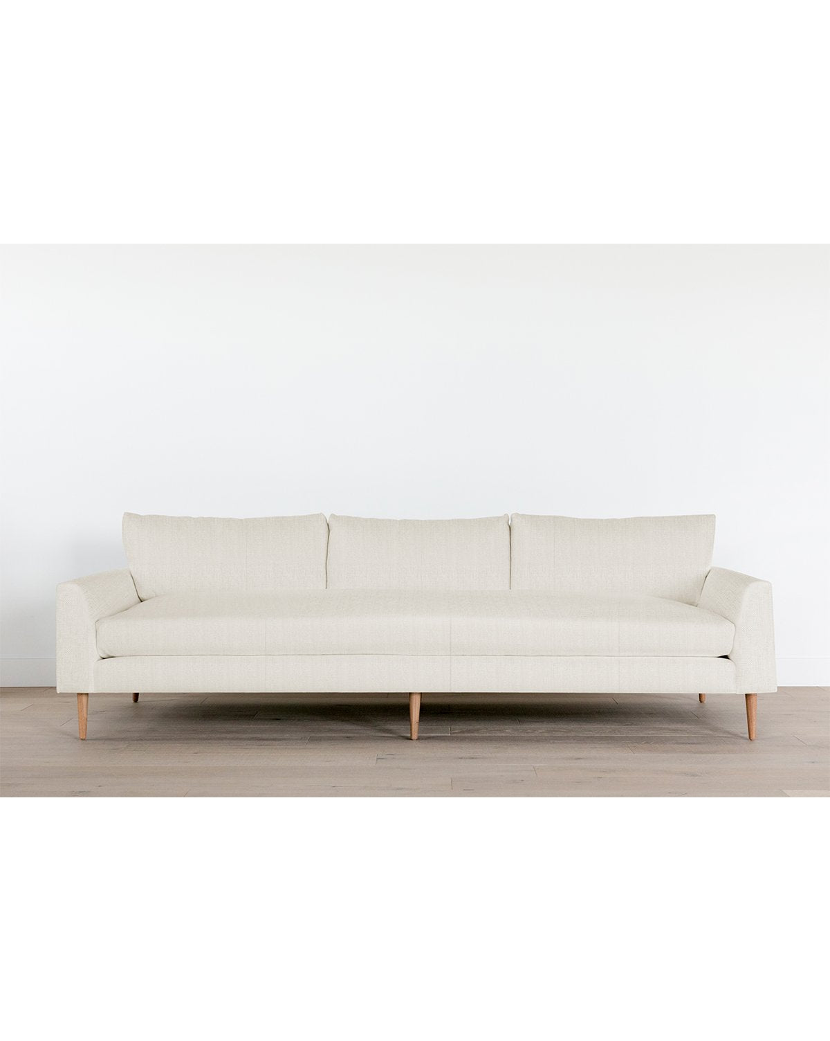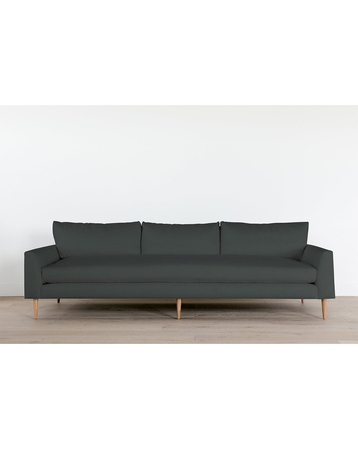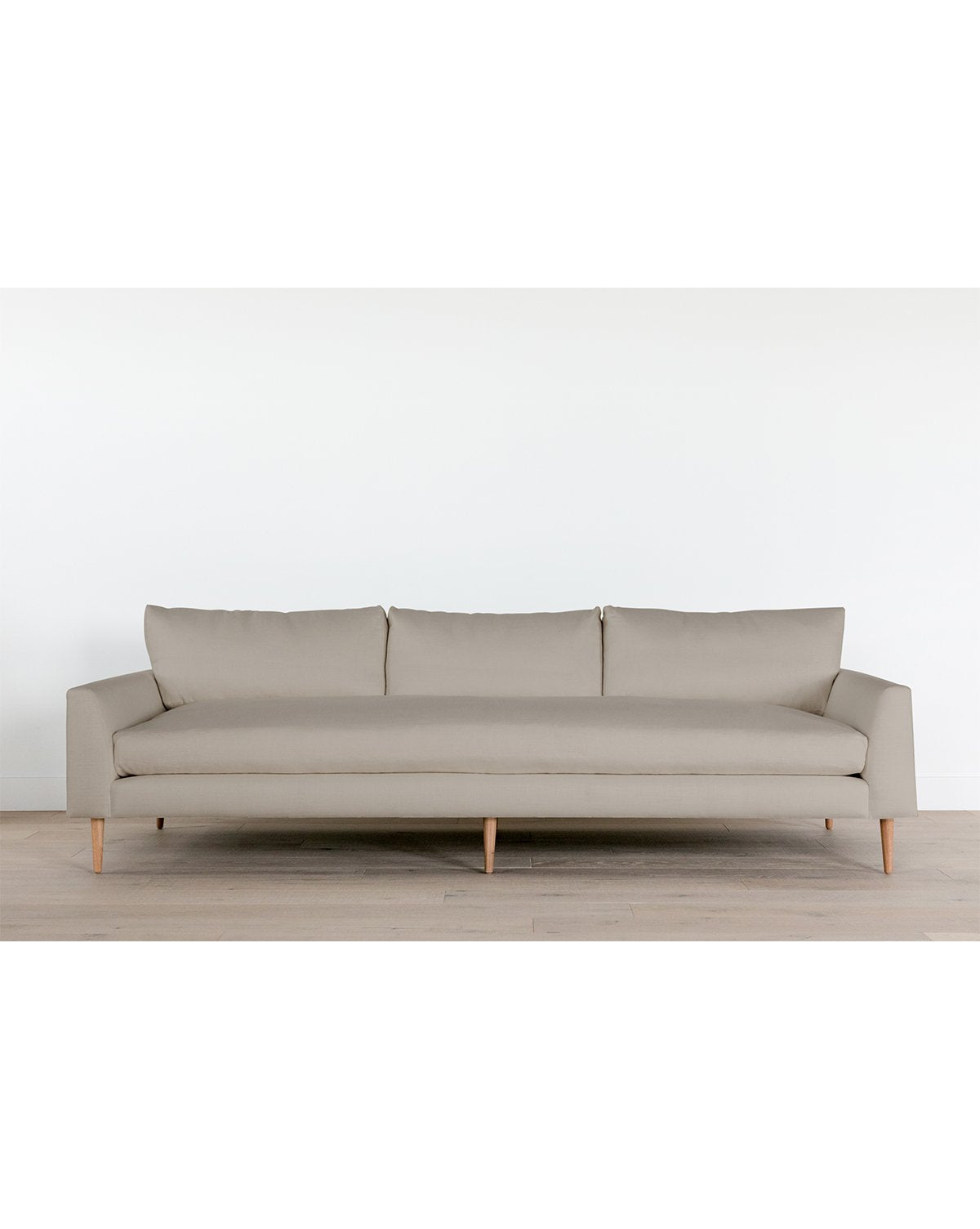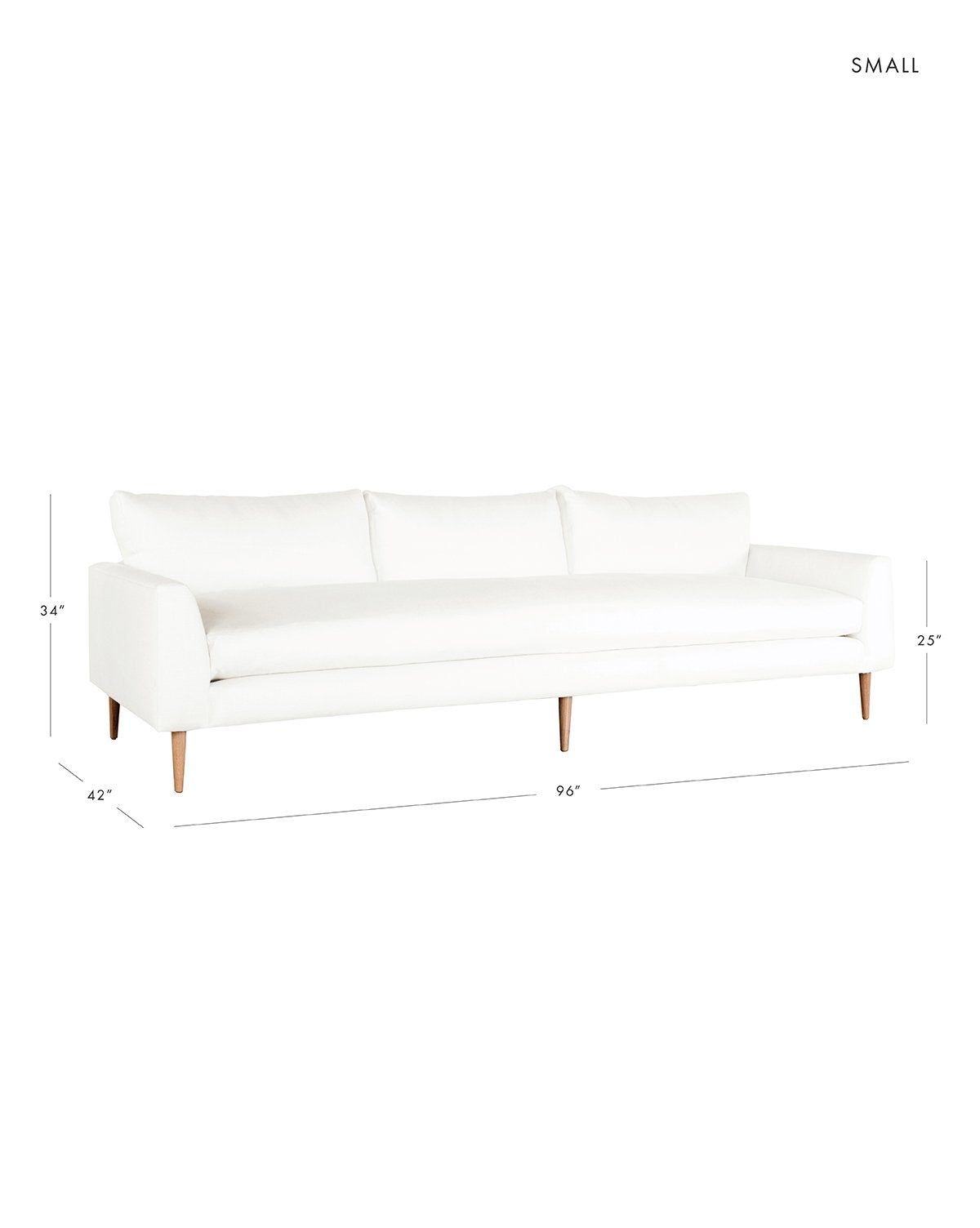 Our Hale Sofa takes the streamlined details of mid-century modern and adds in luxurious comfort –– making the most of both form and function. Its raised base, on tapered legs, is crafted from solid oak, proven by a kiln-dried process. A single down wrapped bench seat is complemented with bolster pillows for both sophisticated style and designful comfort. Customize your own Hale Sofa with an array of high-quality fabric choices from velvet to performance crypton –– this sofa will immediately elevate any current home design.