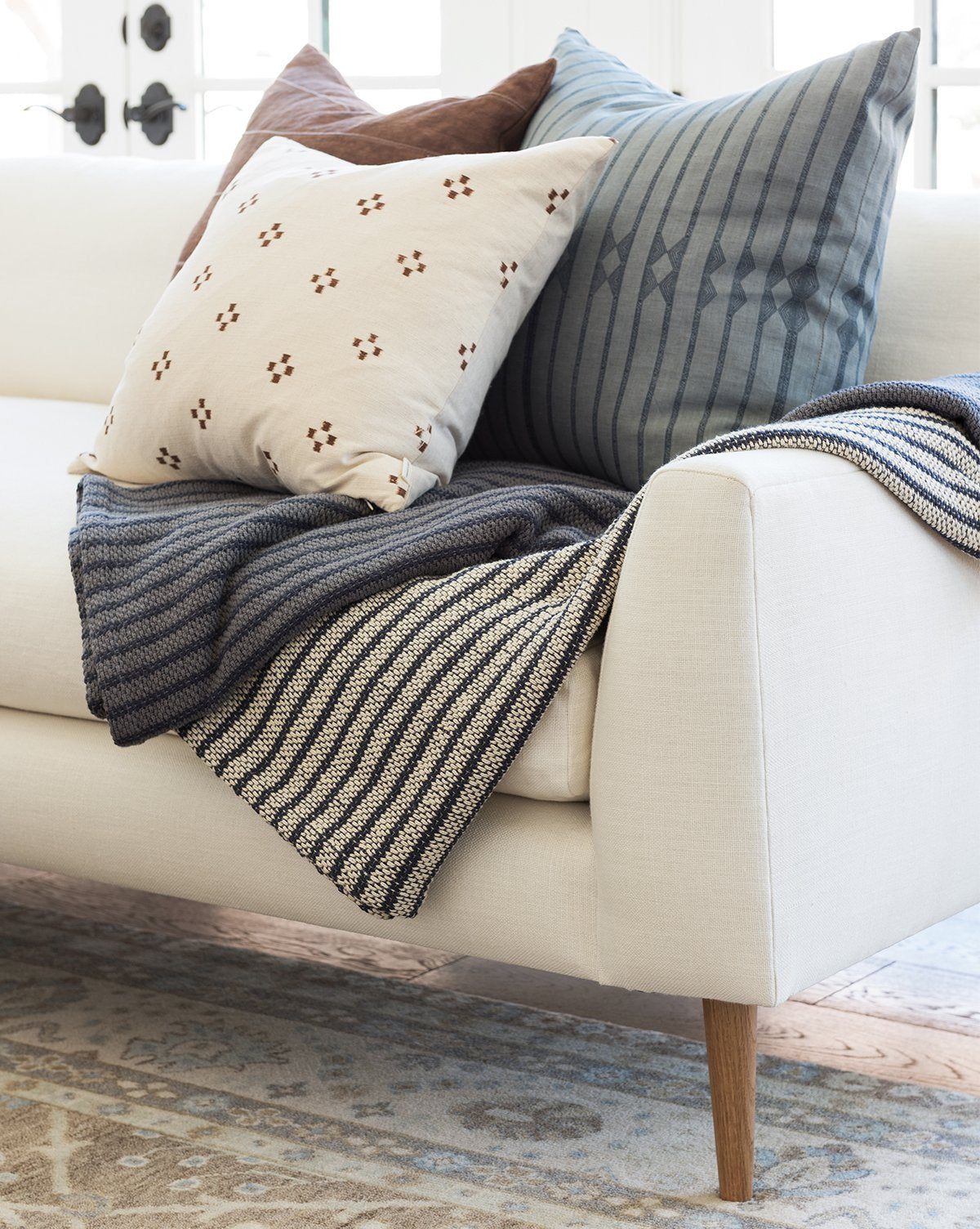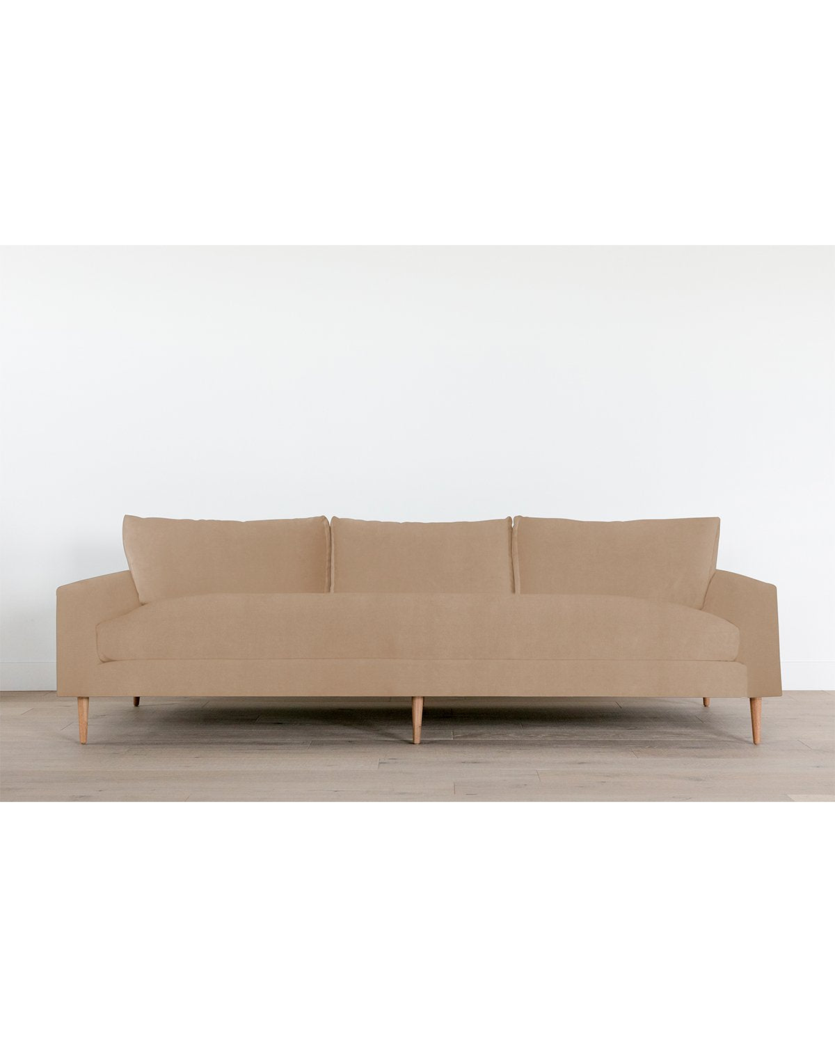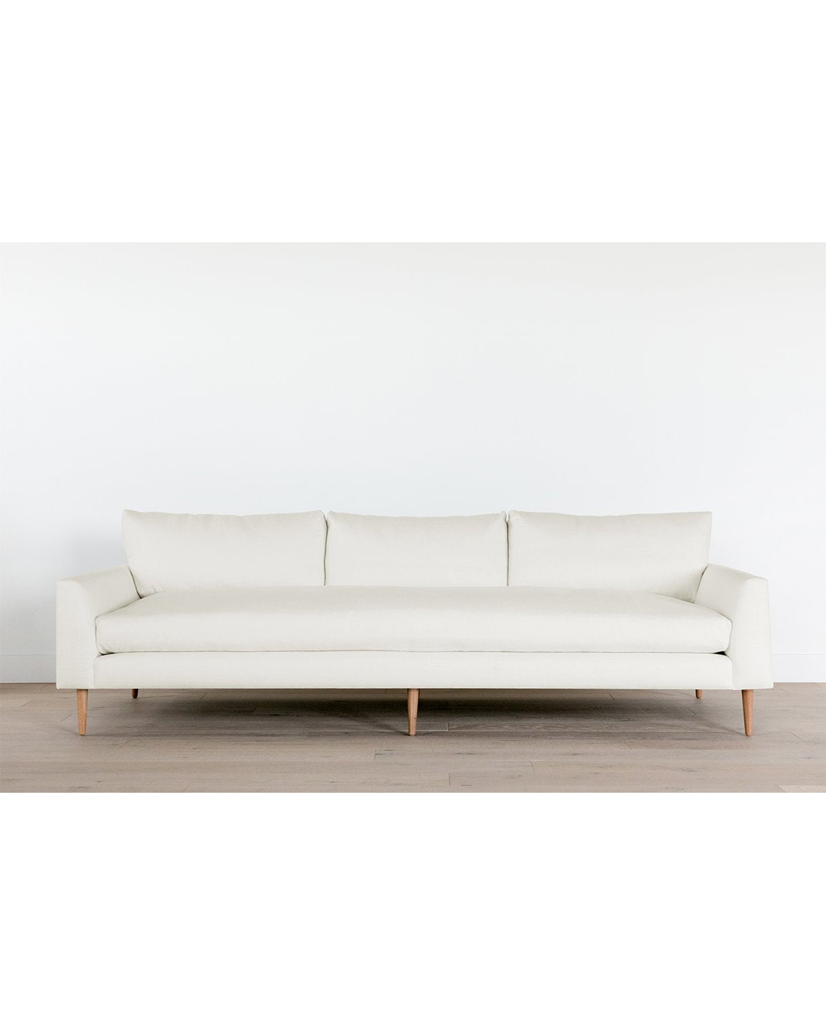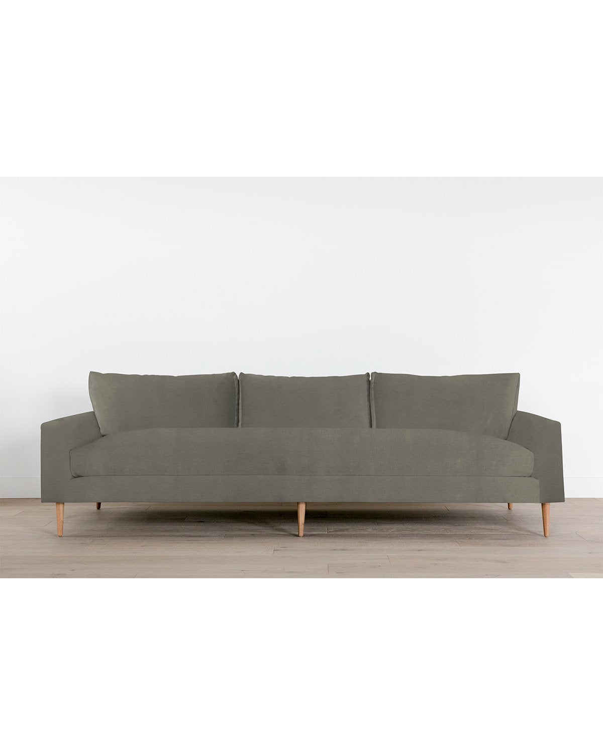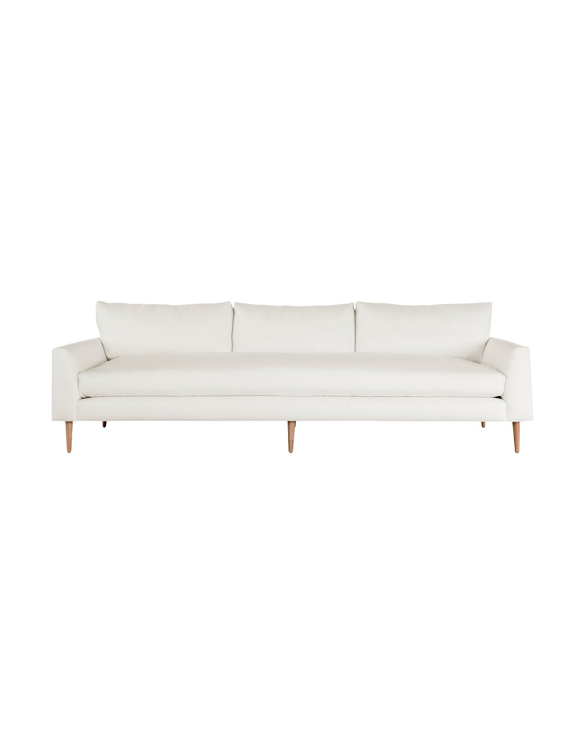 Our Hale Sofa takes the streamlined details of mid-century modern and adds in luxurious comfort –– making the most of both form and function. Its raised base, on tapered legs, is crafted from solid oak, proven by a kiln-dried process. A single down wrapped bench seat is complemented with bolster pillows for both sophisticated style and designful comfort. Customize your own Hale Sofa with an array of high-quality fabric choices from velvet to performance crypton –– this sofa will immediately elevate any current home design.