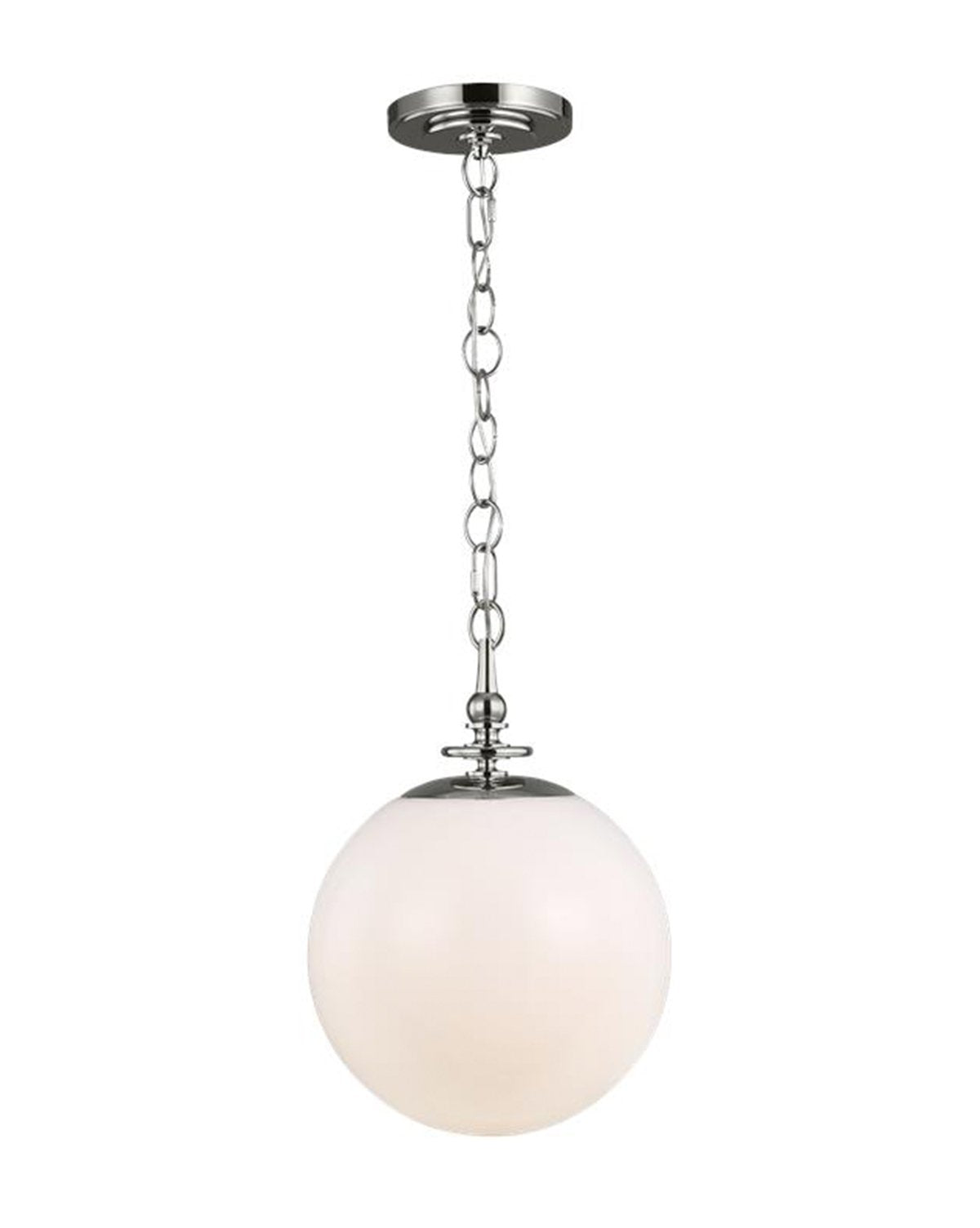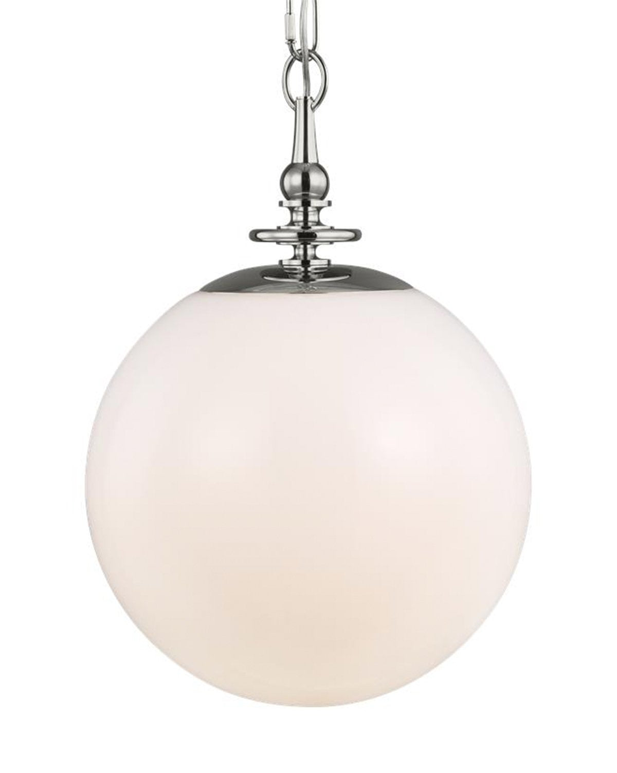 With a simple globe design, our Hamund Pendant is suspended from a circled chain in either aged iron or polished nickel. Perfect for pairing over an island in the kitchen or used alone in an entryway, this pendant lights up your space with a fresh, sophisticated feel.