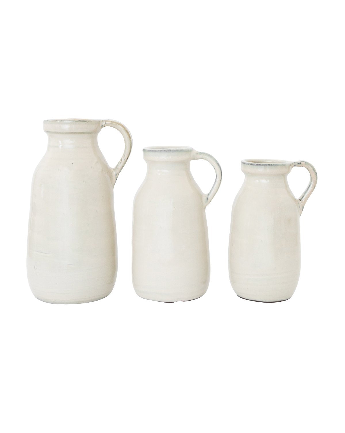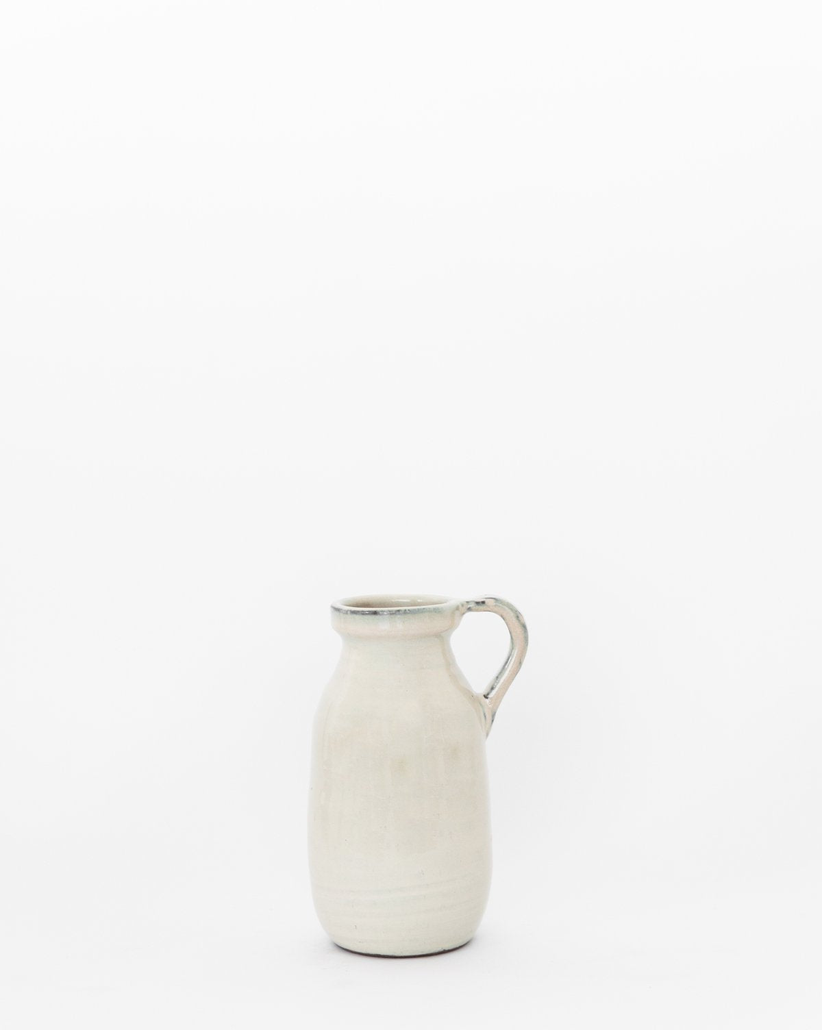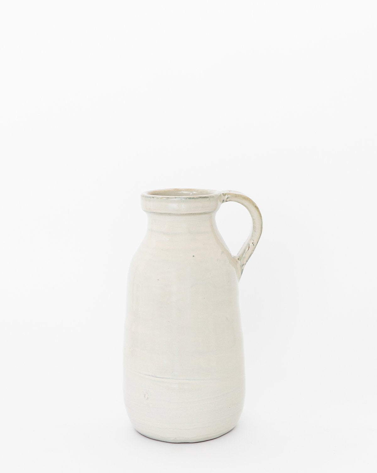 Inspired by modern farmhouse design, our Handled Cream Bottle is full of depth from the rich clay base to the warm cream glaze. Styled in your open shelving or filled with flowers for a hint of color, this bottle enhances your space with its textural feel.