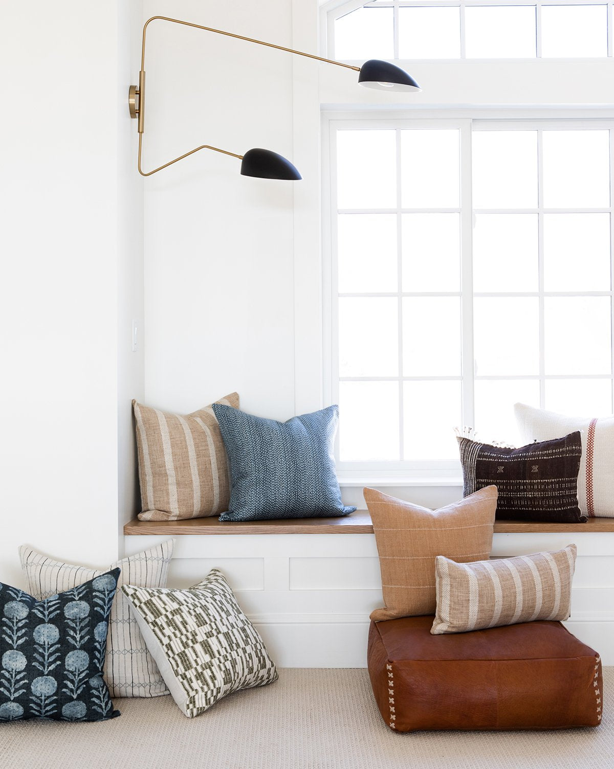 Bring refined color to your space with the deep indigo of our Hannah Pillow. Its rich coloring gets even better with a linen base and small detailing –– a great use of texture. Use the Hannah Pillow to easily blend with your pillows or create a bold and modern look against neutrals.