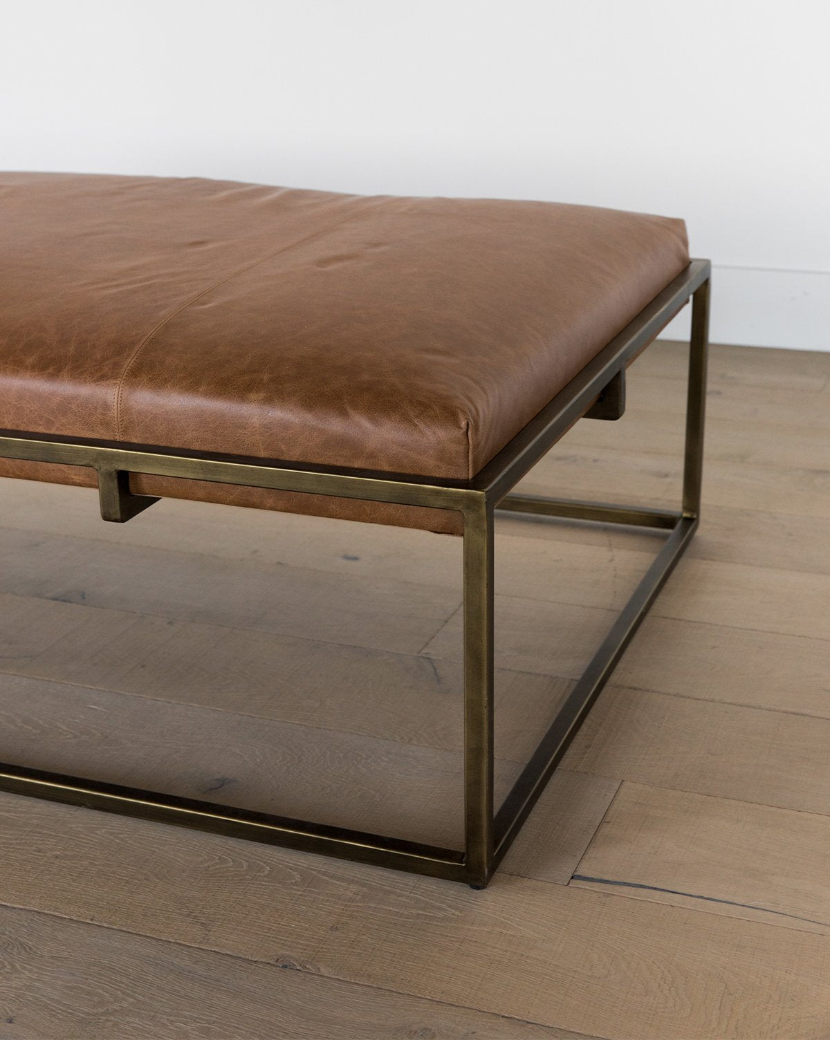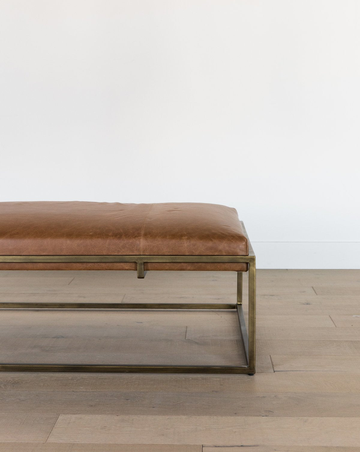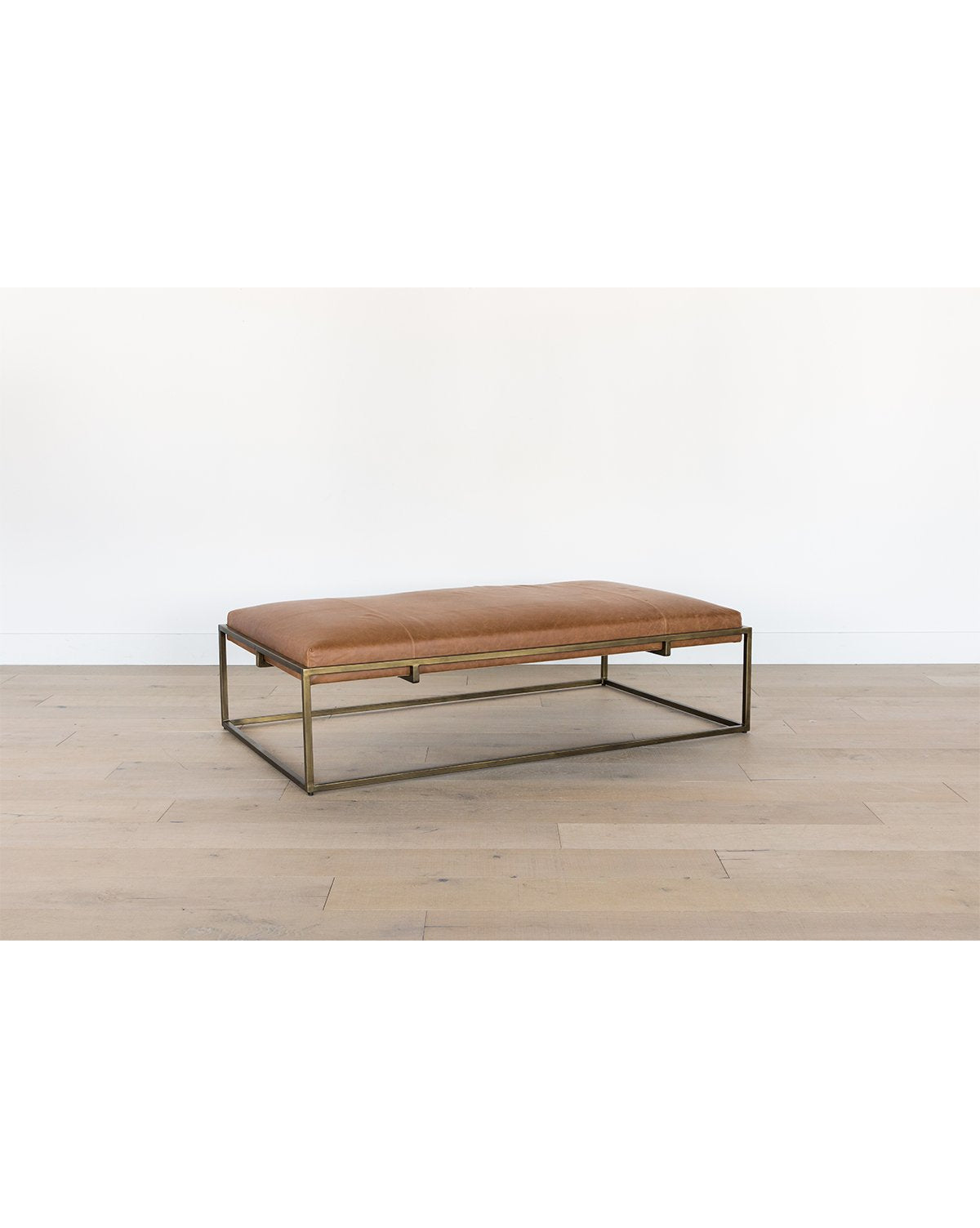From the sophisticated, aniline dyed leather cushion, to the modern brass-finished iron frame, the Harlow Bench is the epitome of luxury. Style it in your living room as a multi-purpose coffee table, or in a large mudroom for comfortable seating while taking off your shoes––either way you can’t go wrong with its refined and timeless design.