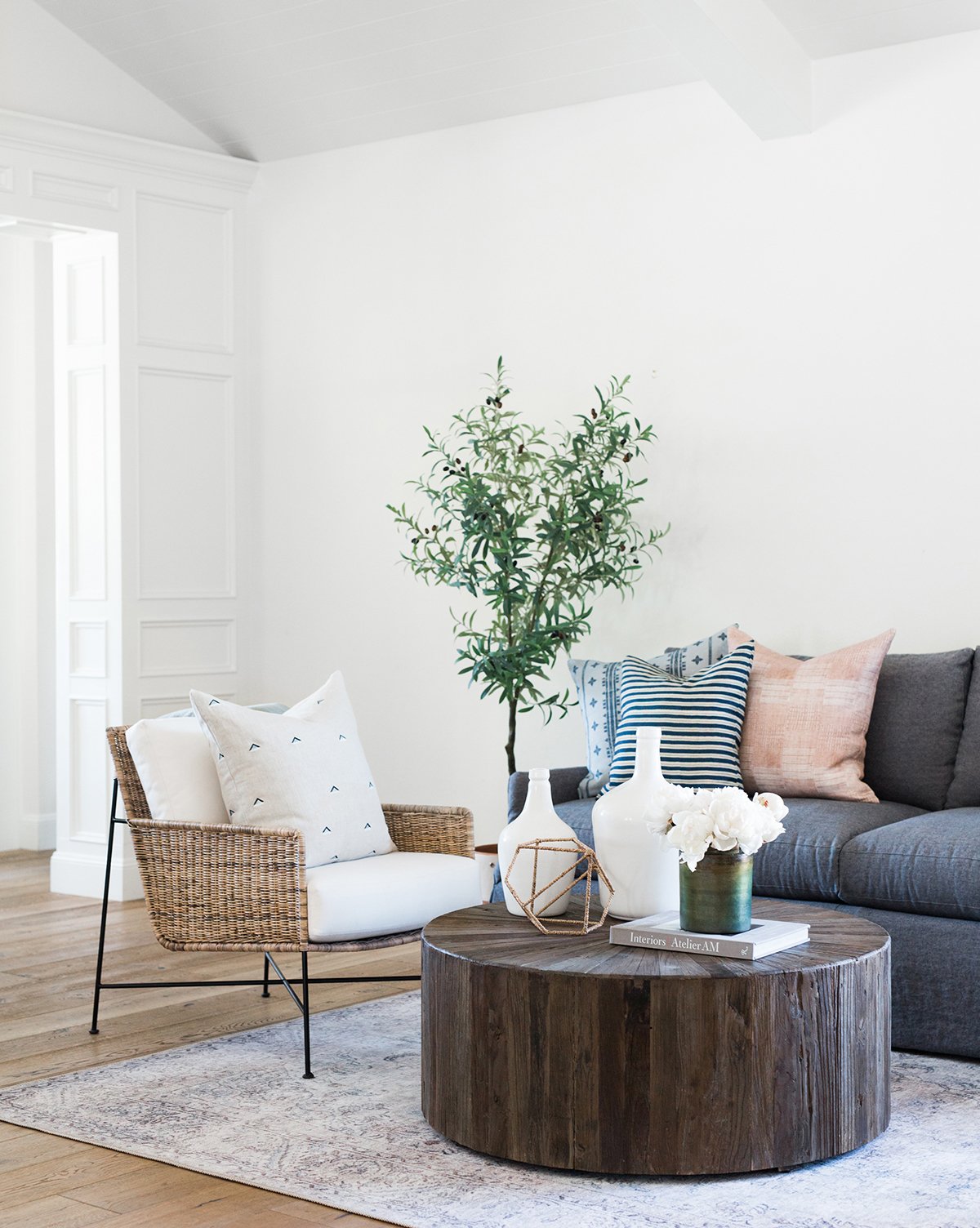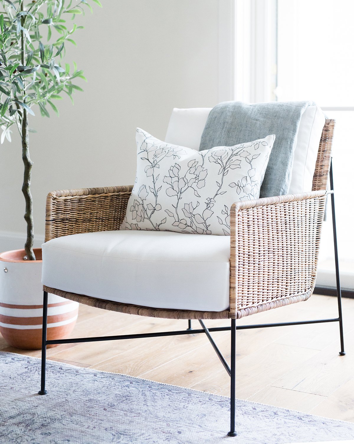 Outfitted with a thick cream cushion, the Hattie Chair plays with visual contrast in its juxtaposed slender black metal frame. Its natural rattan peel seat adds dimension by bringing organic texture to its design.