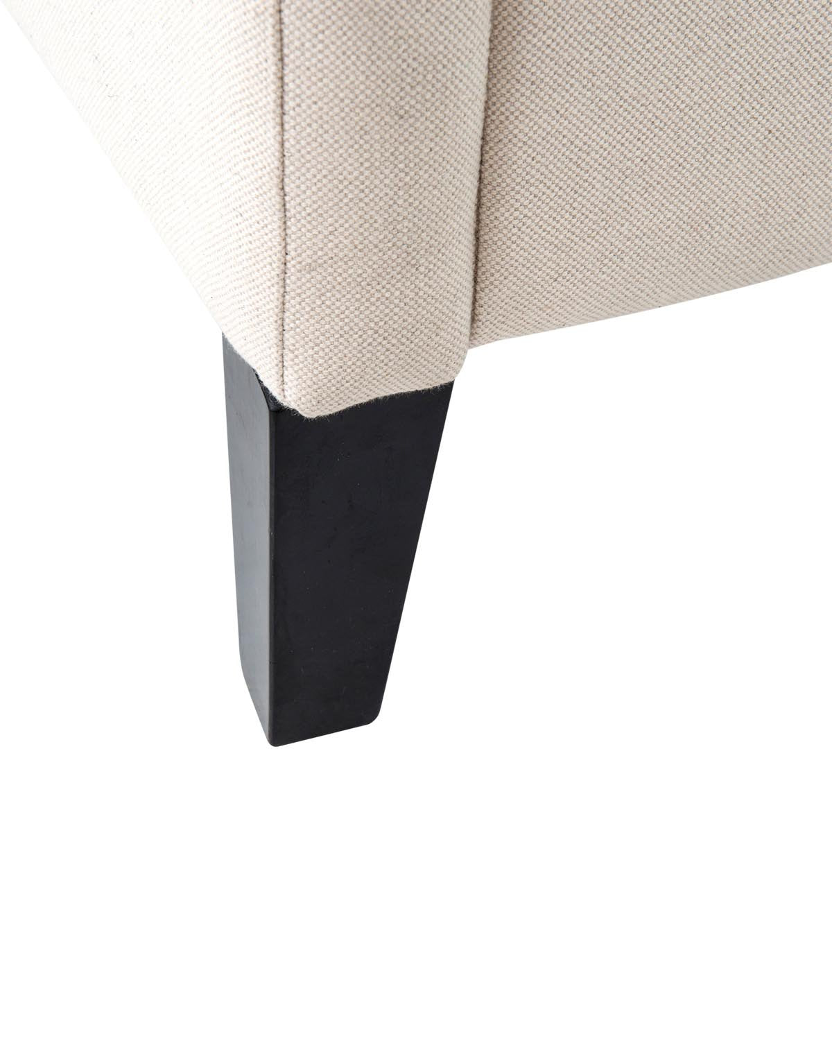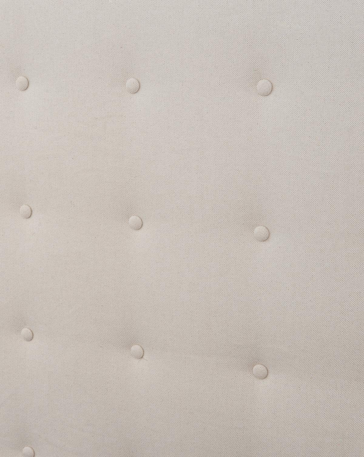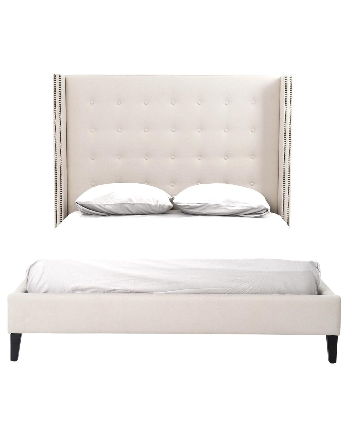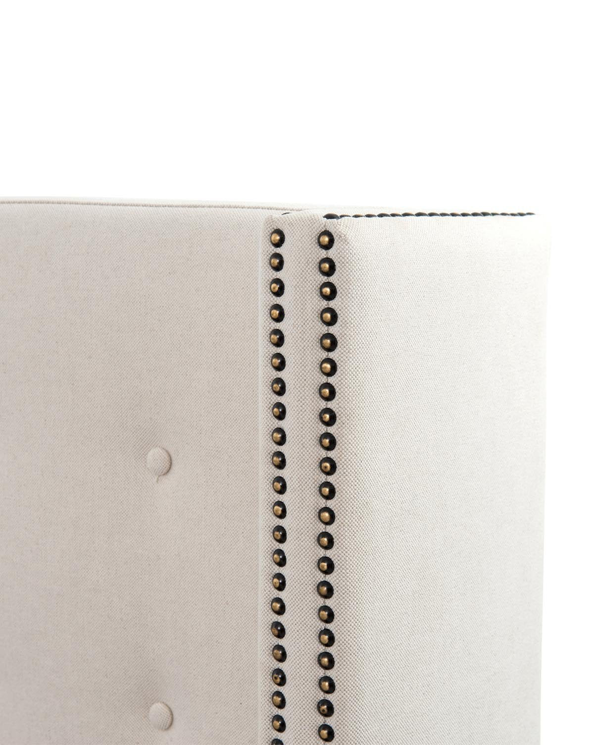 Neutral fabric, subtle tufting, and two rows of antique brass nailheads make this bed work with about every duvet and throw out there! We love its tailored look and perfect mix of modern + traditional styles.