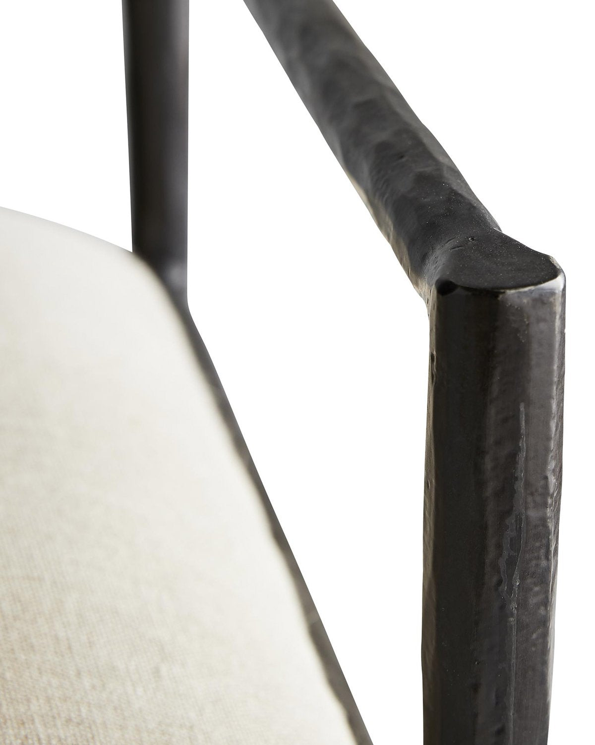 The Hennie Bench’s sharp-angled frame is hand-forged adding a dimensional element to its form. Balanced with a natural linen cushion, this bench elevates your seating design with a refined, classic feel.