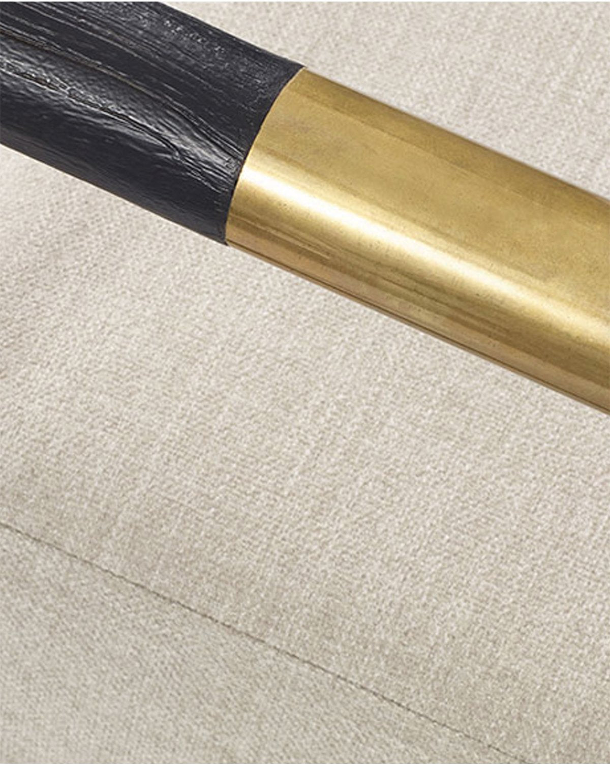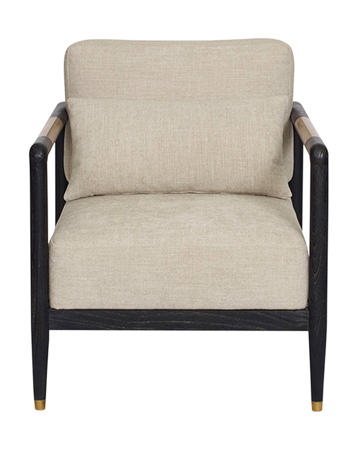 Filled with classic details from the tapered legs to the perfectly stuffed cushions, the Hepner Chair exudes sophistication whether placed as an accent chair in your living room, or as the focal point of your reading nook. Its solid teak frame features brass arm details and feet caps, as crypton covered cushions bring added durability to the relaxed design.