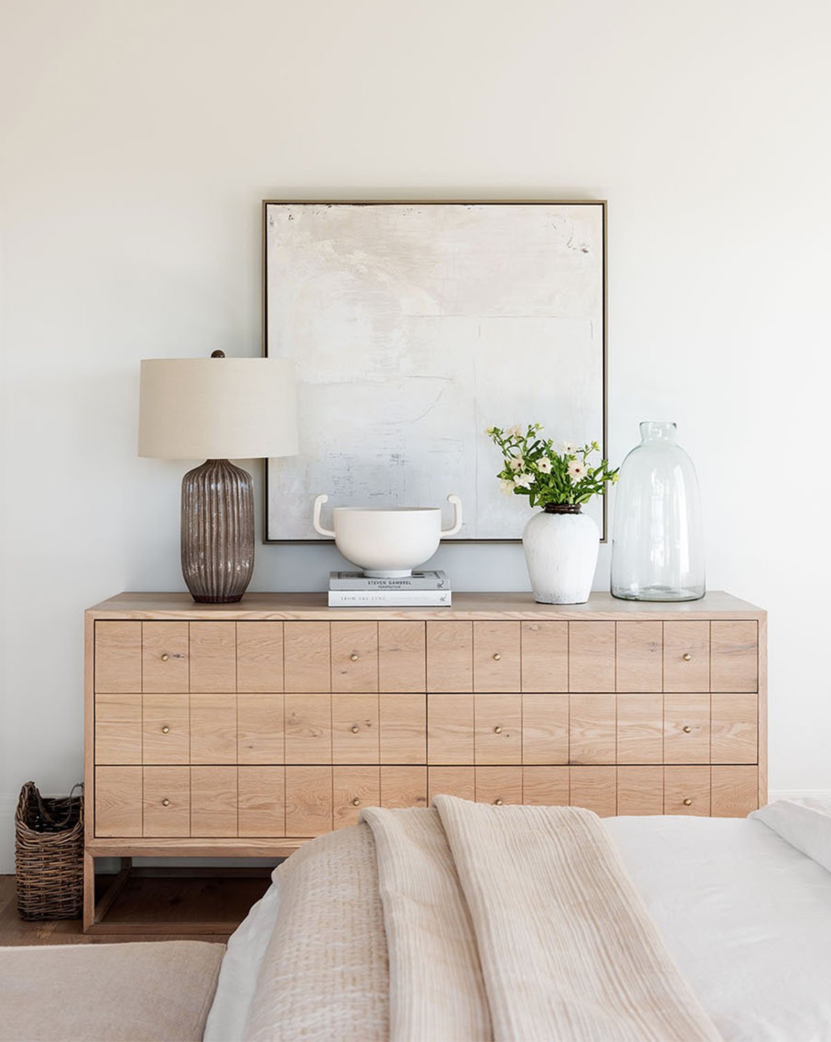 With a sophisticated, intricate design, our Huxton Dresser looks good from every angle. During the design process of this beauty, we knew we wanted to create a piece that was both functional and detailed. We chose an etched grid pattern for the front drawers to draw interest, then centered the brass pulls on the end of each drawer for function. Finished with a unique boxed leg detail, this dresser creates a light and airy moment in any bedroom, from traditional to modern.