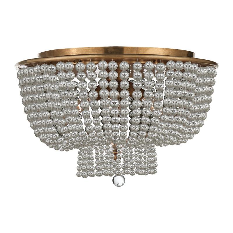 Set a tone of elegance for your favorite room with this incredibly stunning flash mount. Luxury is guaranteed with pearl-like beads that come in clear glass or white acrylic. The flush mounts charm is completed with burnished silver leaf or hand rubbed antique brass finishes at the base.
