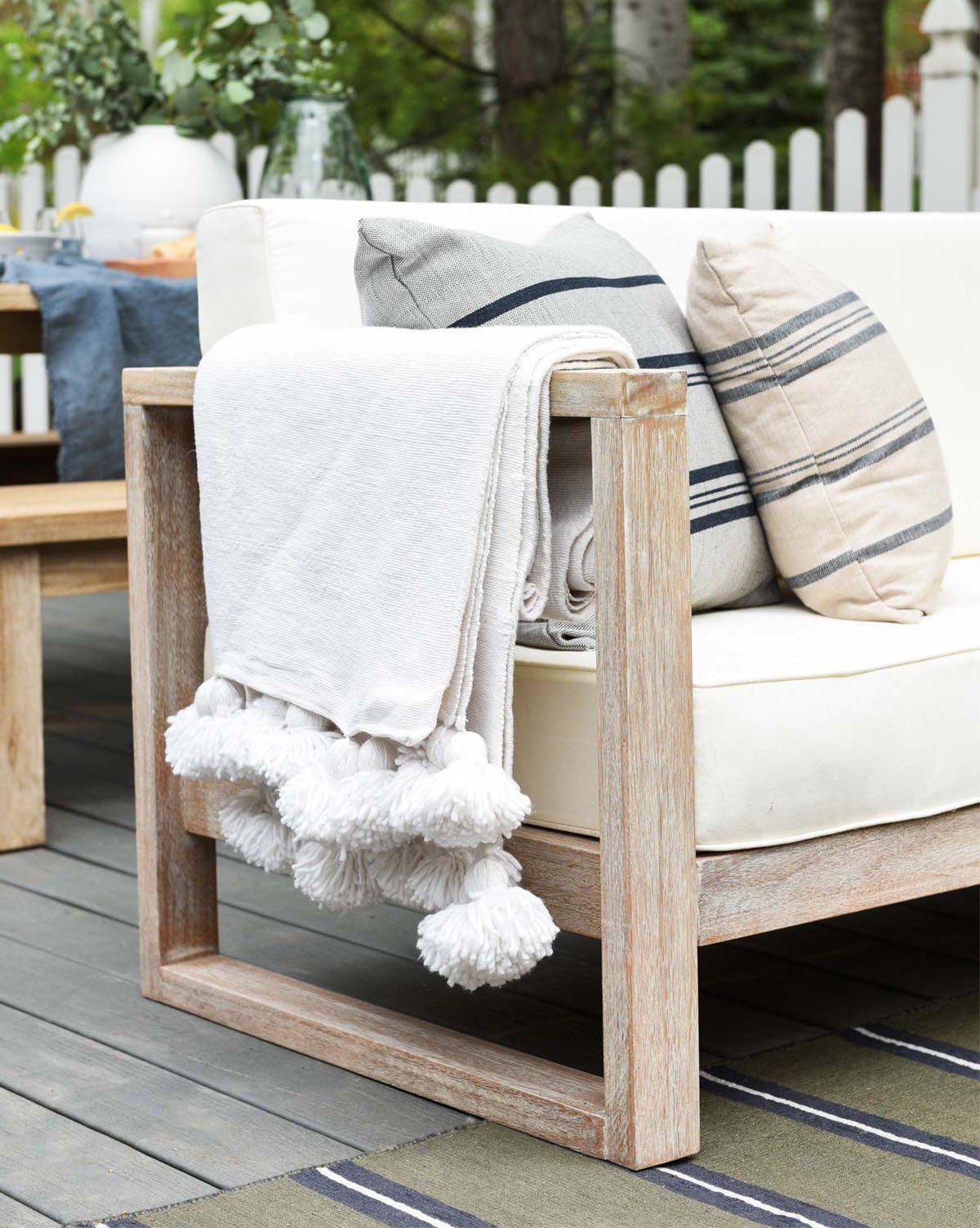 Our Jamestown rug is handwoven in India from recycled materials by skilled artisans. While crafted to withstand the outdoor elements, its cotton feel and look makes it comfortable and pretty enough for indoor spaces too! We designed its deep green stripes to beautifully layer with a doormat or set the tone with outdoor furniture on top.