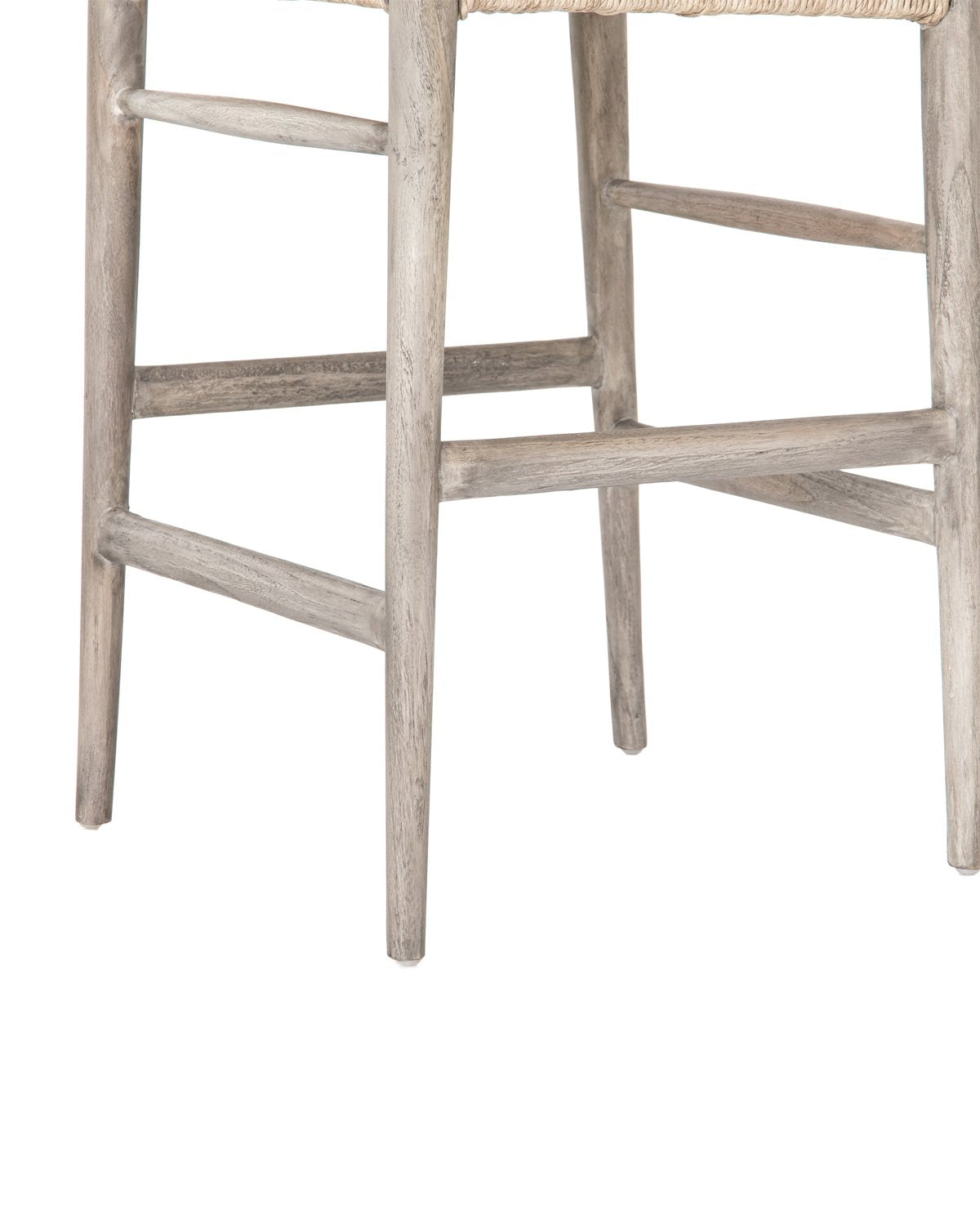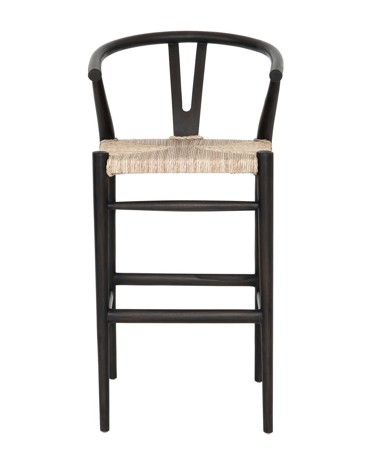 With a wishbone style back and modern curves, the teak-framed Jasper Bar Stool makes a statement wherever it’s placed. Horizontal bars bring visual dimension to its base, as a woven wicker seat adds refined texture, finishing off the design.