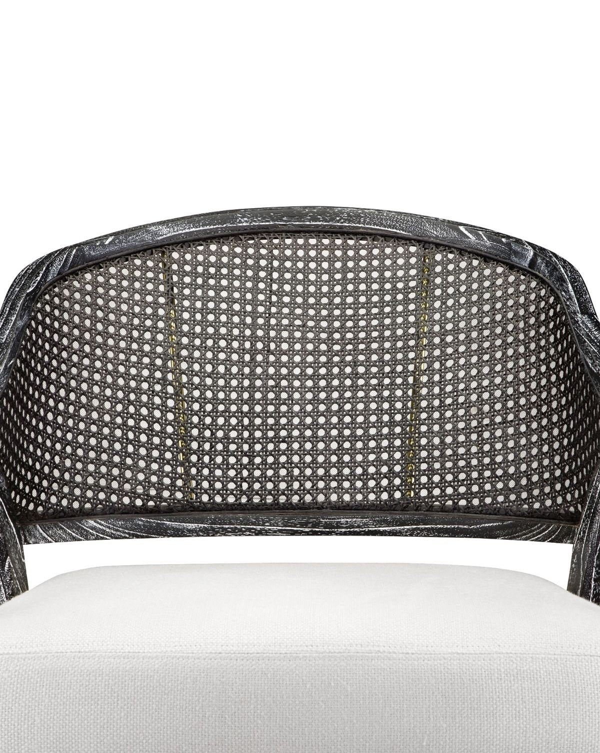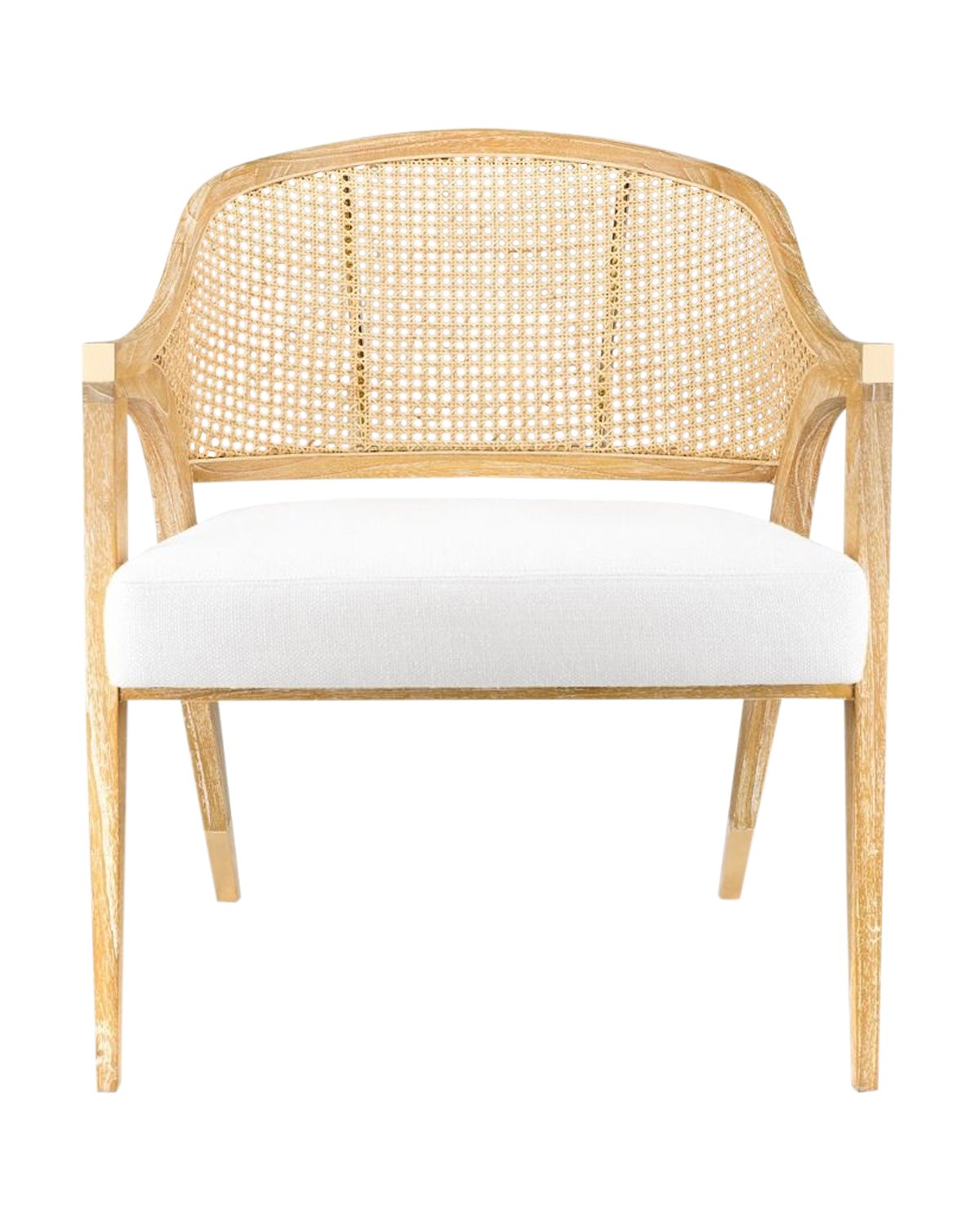 Our Jenson Chair is crafted from a hand-woven rattan back and sustainably-harvested Cape Lilac Mahogany. Elegant and understated hand-cast brass sabots and arm caps finish off this classic design.