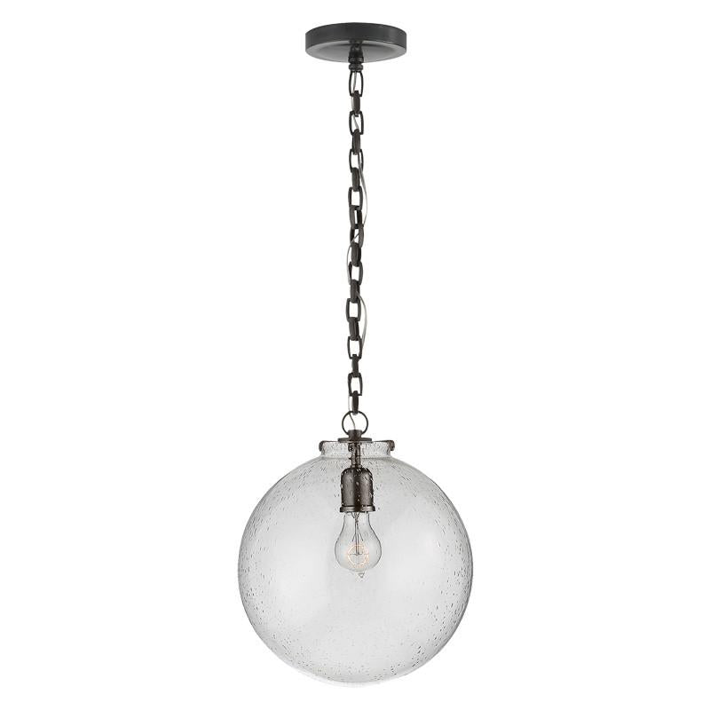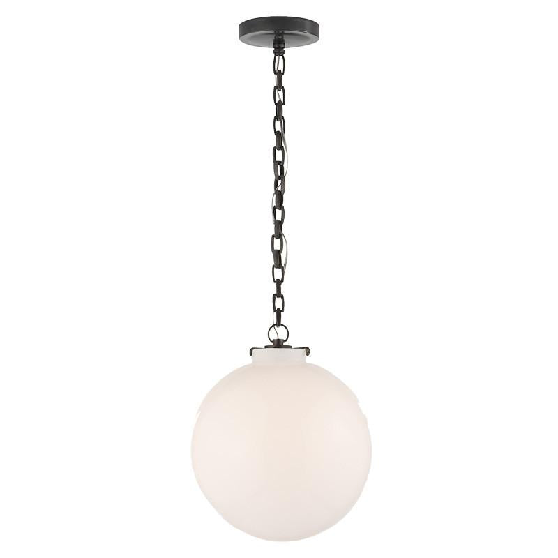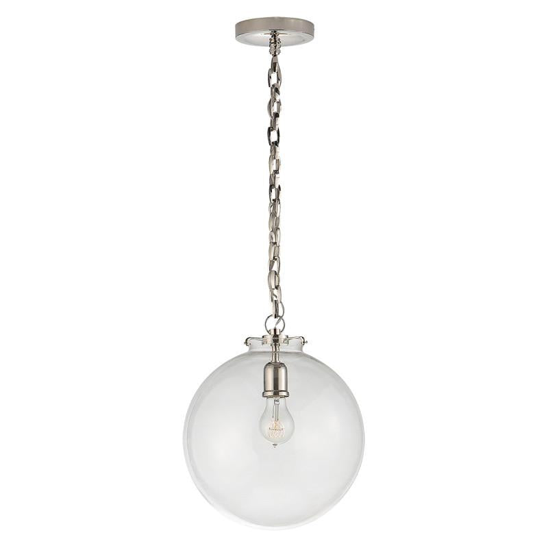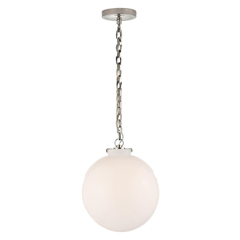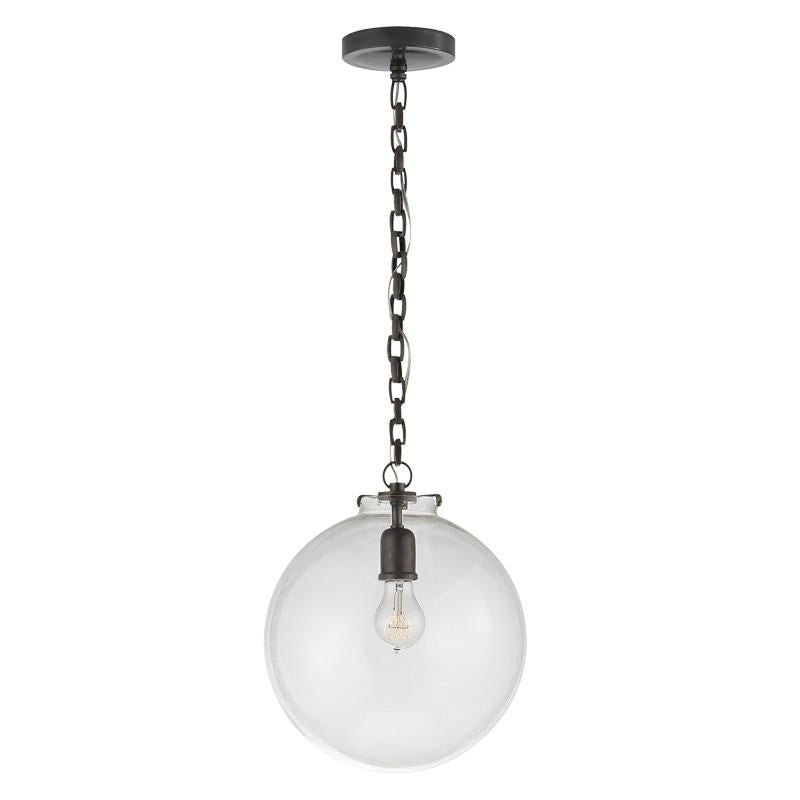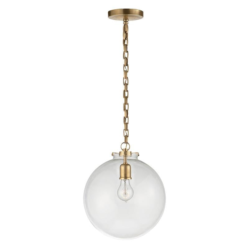 This traditional round glass globe pendant will illuminate your space with its stunning glow. We love that the chain link gives just enough edge to the shine of the glass.