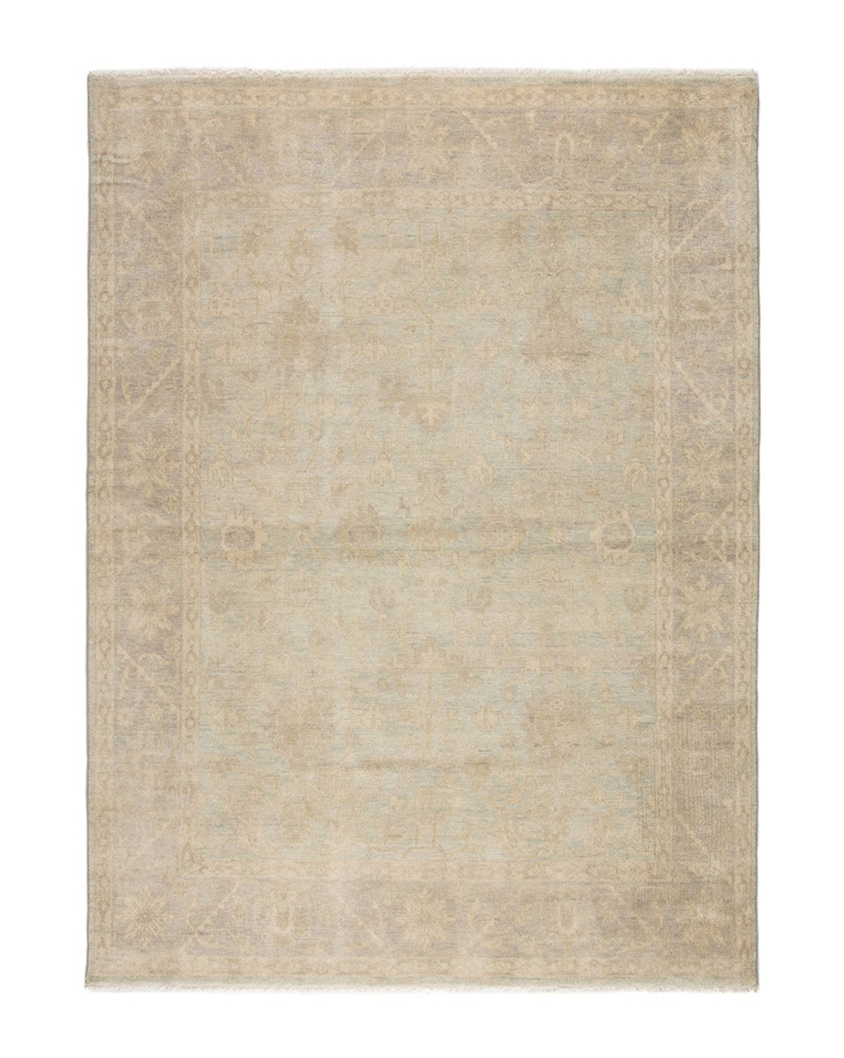 Hand-knotted by skilled artisans in India, the La Rochelle Rug anchors your space with understated and refined style. Making out a subtle pattern through the warm grays and blues of the design, this rug draws your eye while lending a soft and serene look to transitional spaces.