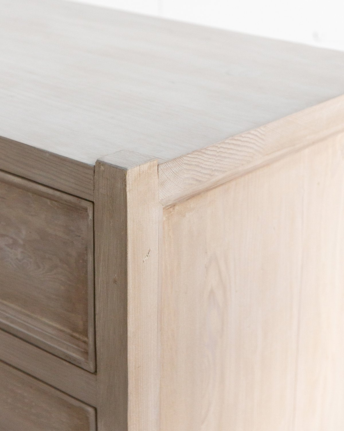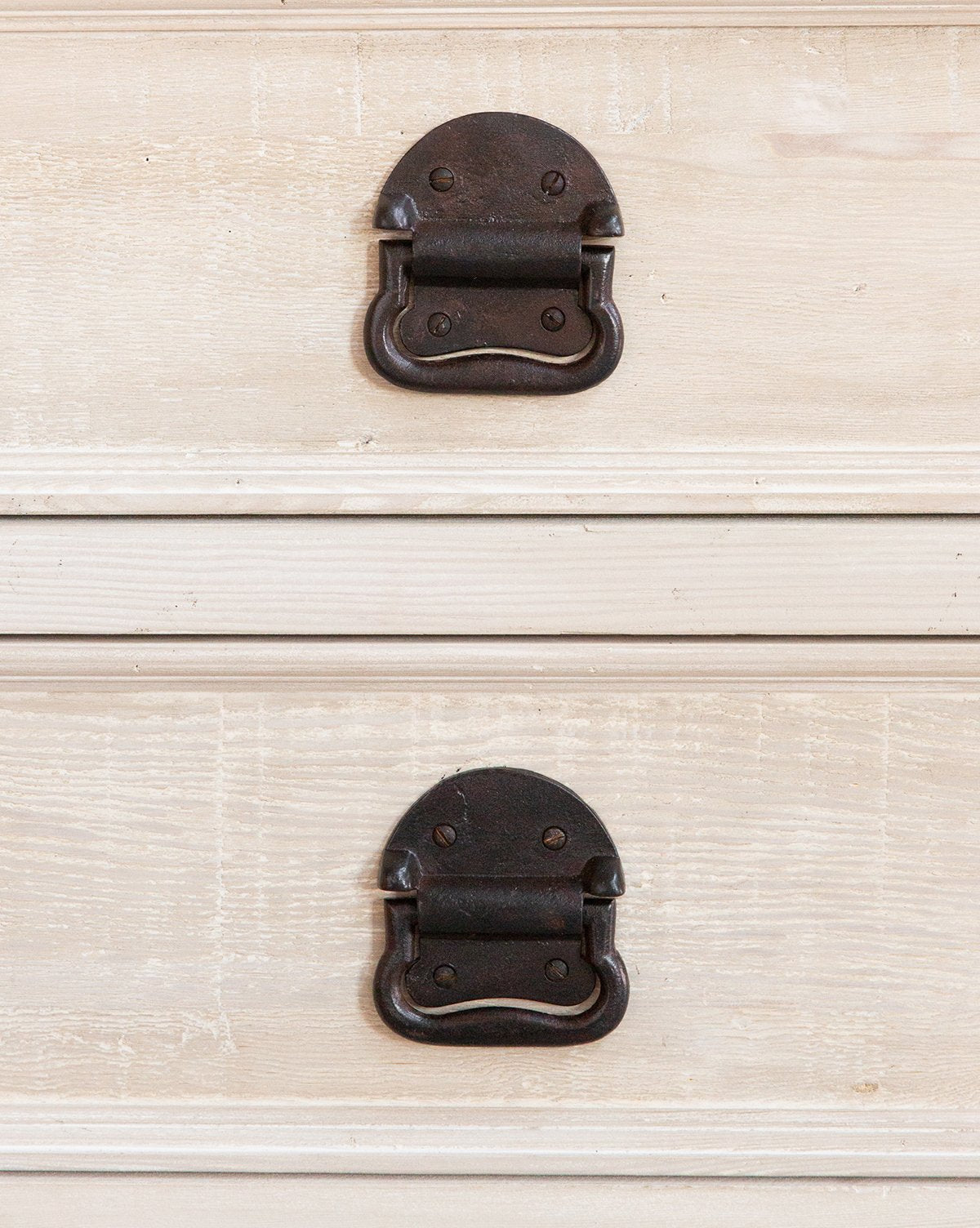 We love this dresser’s raw gray wash finish. It creates the perfect contrast with its dark, metal hardware. Don’t miss the six drawers that conveniently pack in some serious storage space!