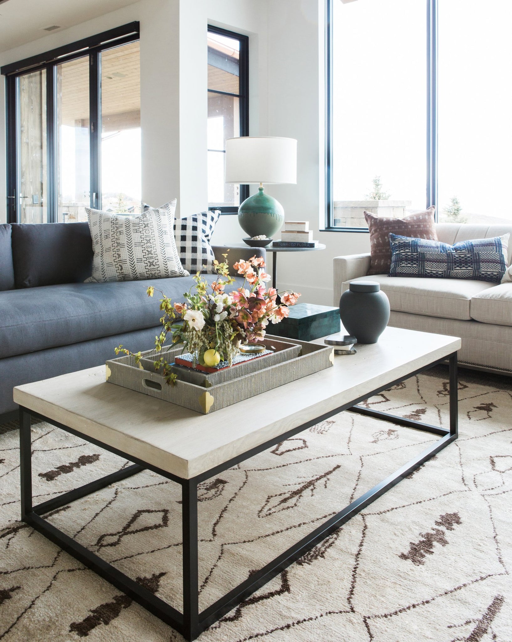 Wood and steel join forces to create ultimate sophistication in this coffee table. The chic black and the gray wash pair beautifully together, and the tabletop offers a large amount of space for you to decorate. Adorn with charming books, florals, trays, and candles.