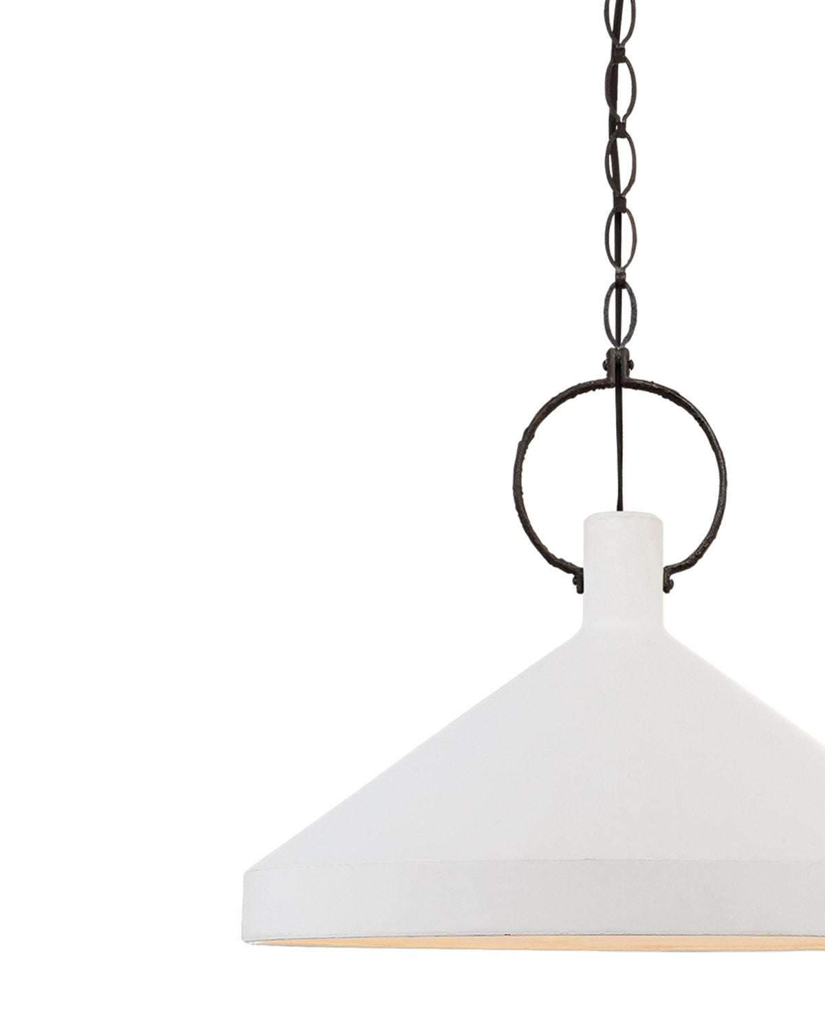 We were immediately attracted to the Limoges Pendant for its bold simplicity. Its strong conical shade is held by a large circular clasp that bring balance and subtle interplay with shaping into its design.
