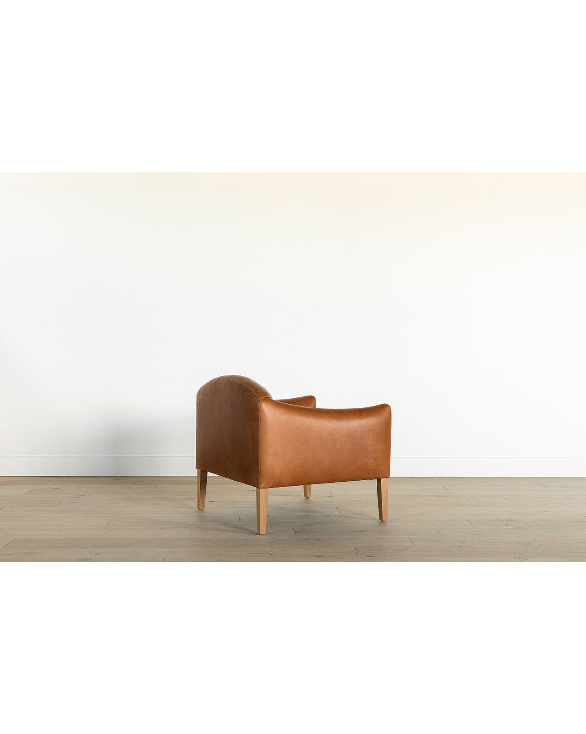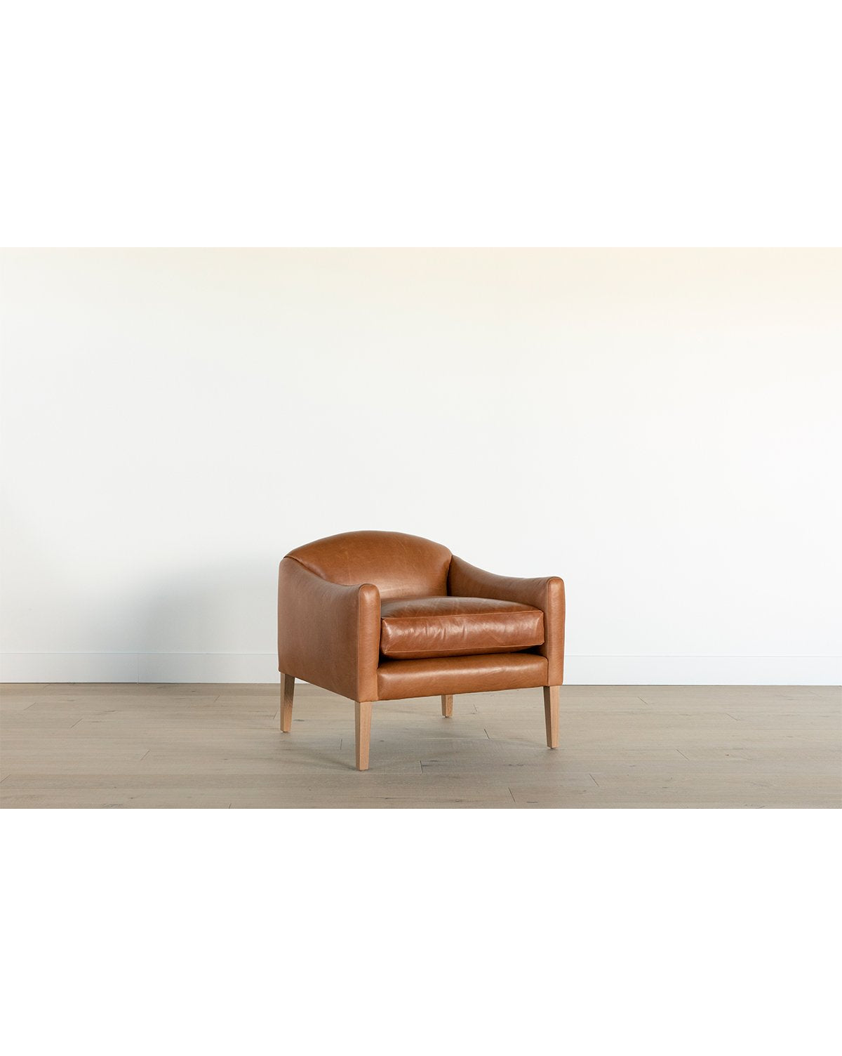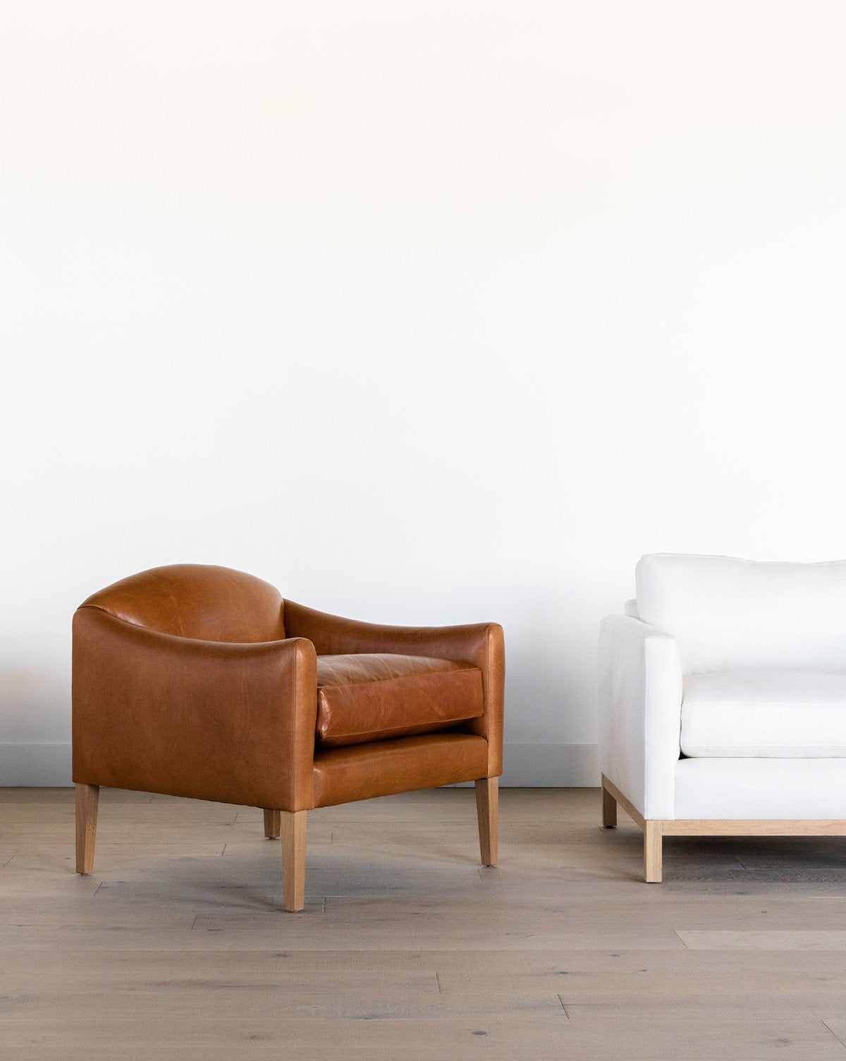 Smooth curves and handsome leather create a piece that shows off your refined taste. Zero in on your style with your choice of two rich leather tones in our made-to-order Linder Leather Arm Chair. Each cut of the leather is dyed through an aniline process to retain the natural integrity of the hide. Aging beautifully over time, this supple hand-stitched leather encases full down wrapped cushions, masterfully mixing comfort with modern style. Slightly tapered legs crafted from kiln-dried oak for durability add another level of style to its sleek design.