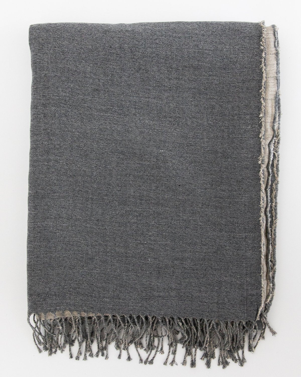 The perfect throw for those colder temperatures, this innovative reversible throw is crafted from both 100% linen on one side and 100% merino wool on the other. Relaxed and casual by nature, its luxurious construction is extremely soft and warm, while its neutral tones enhance your space with a layered effect draped over your favorite sofa or bed.