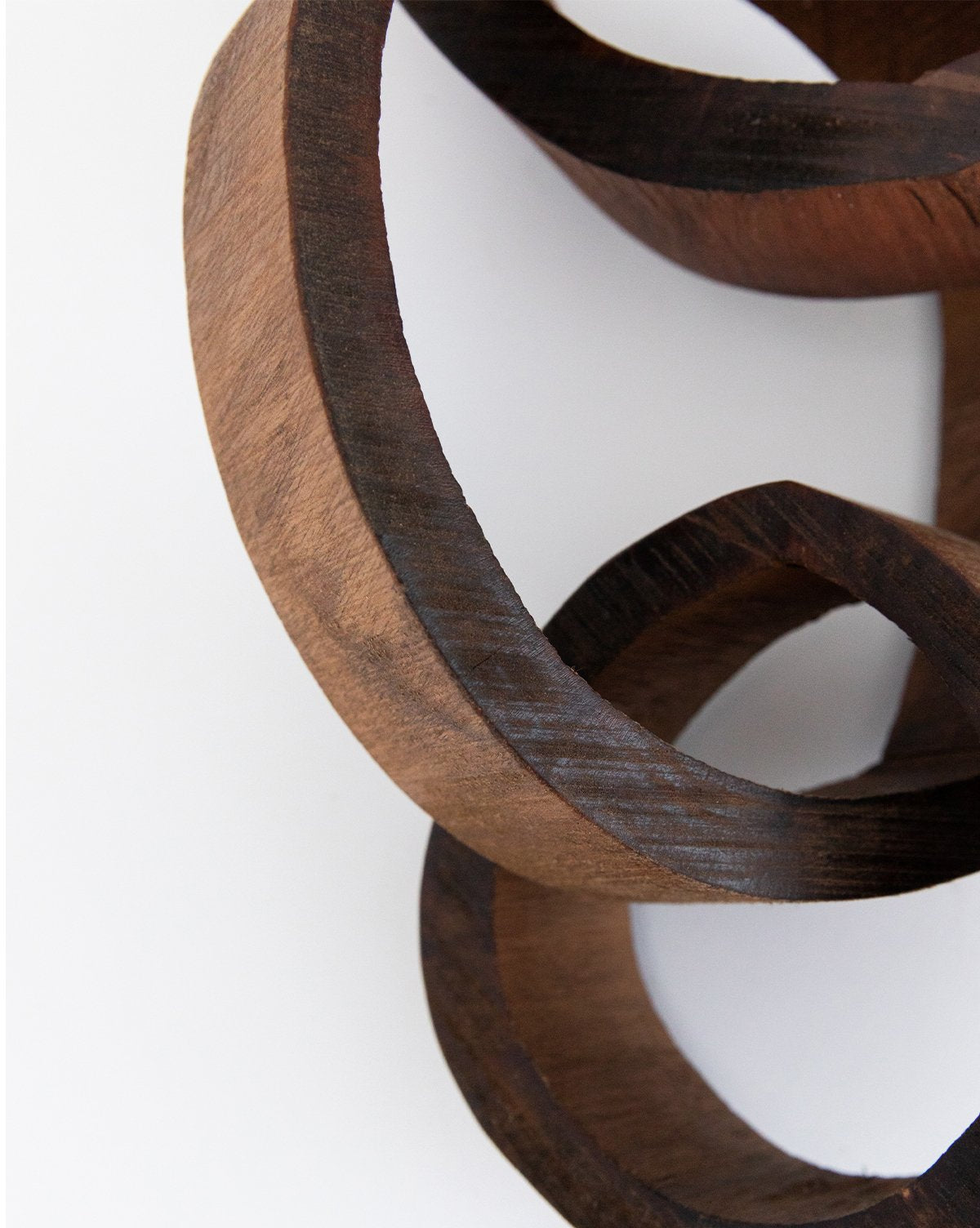 Nature takes on modern form with our Linked Wood Object. Each link is masterfully hand carved and crafted showing off the beauty of its knots and grains and rustic texture. Casually place on a stack of books on the coffee table or in a bowl for the easiest way to finish of your styling.