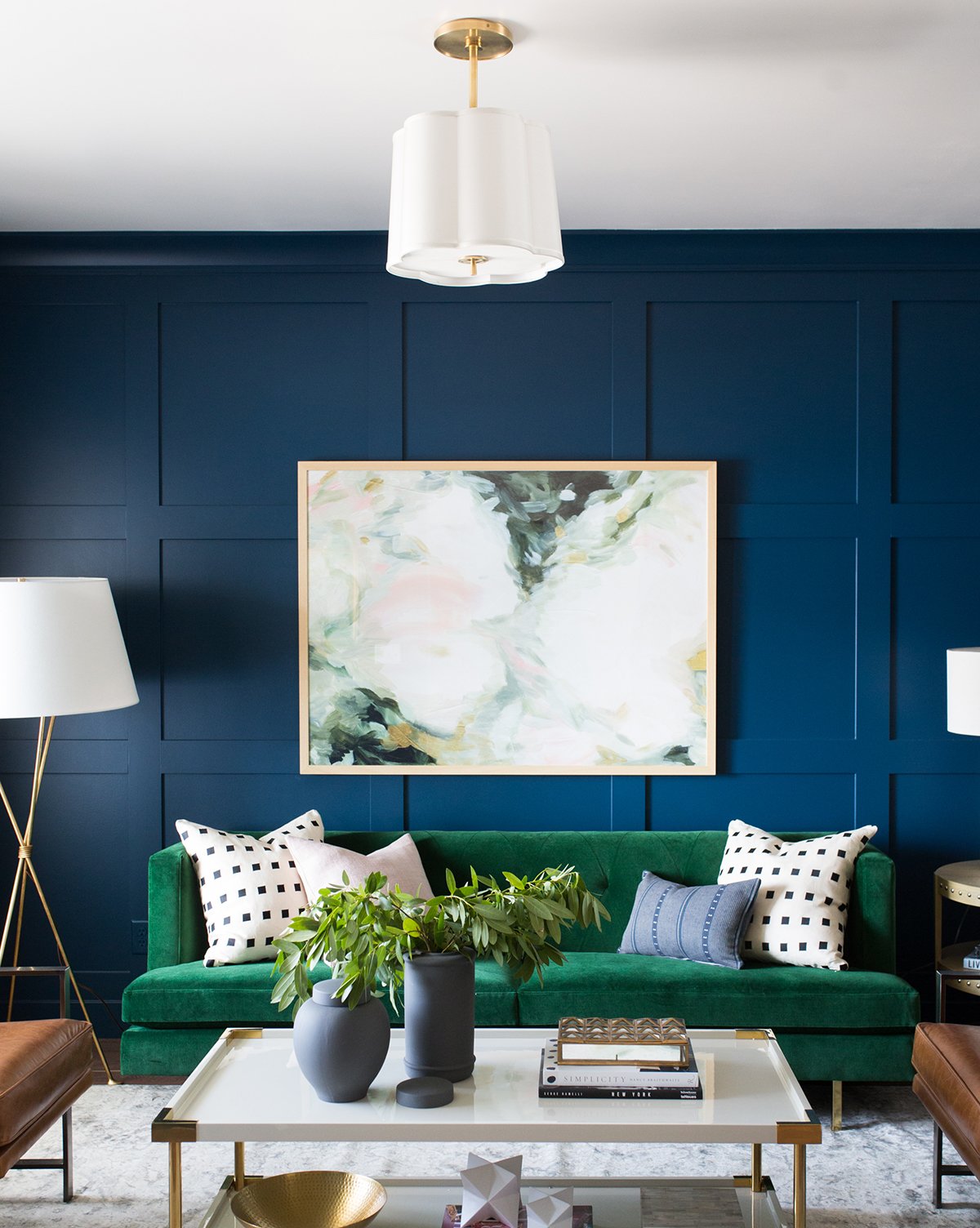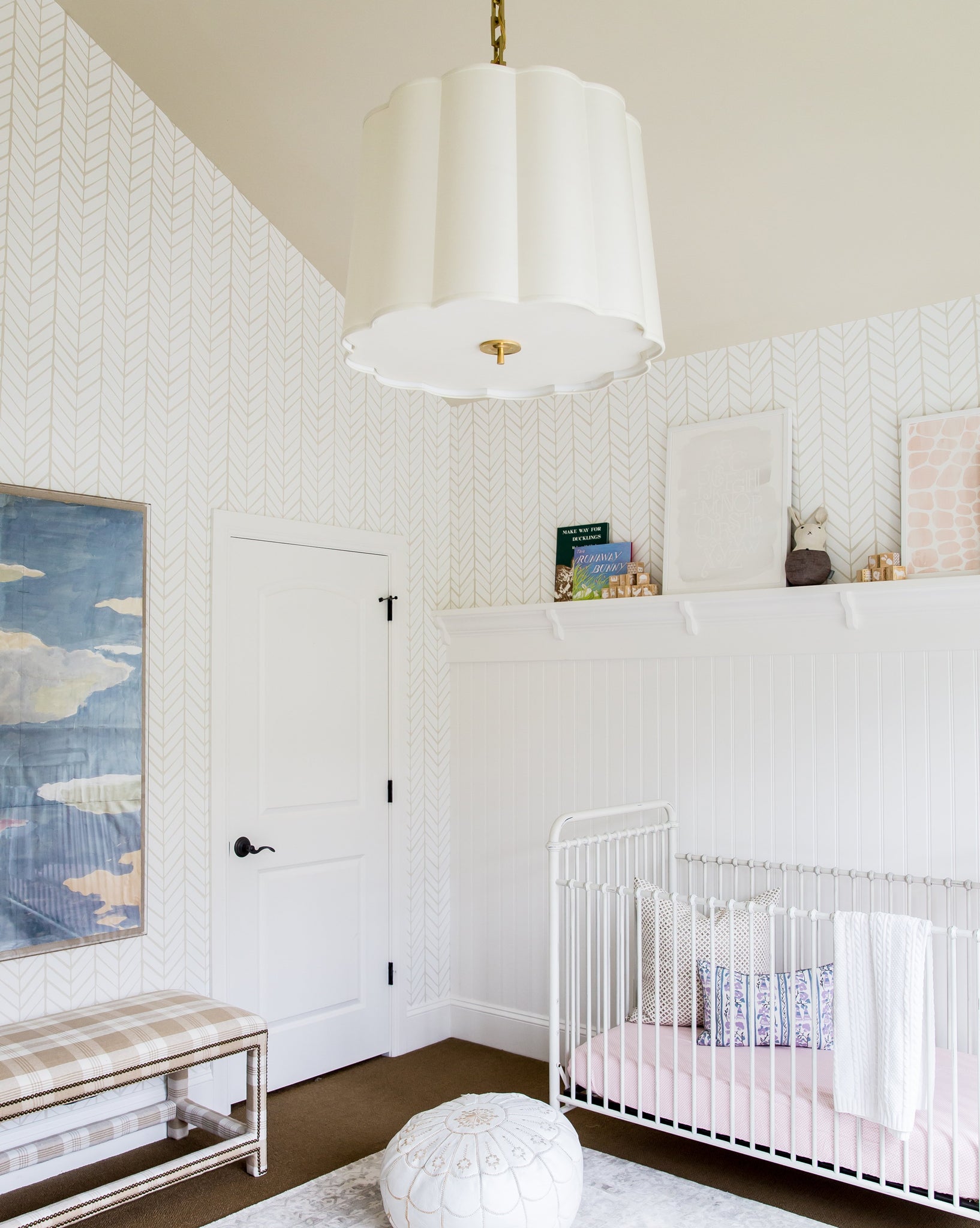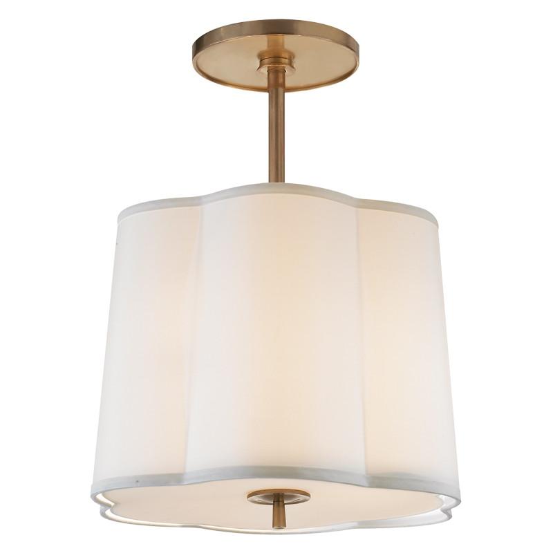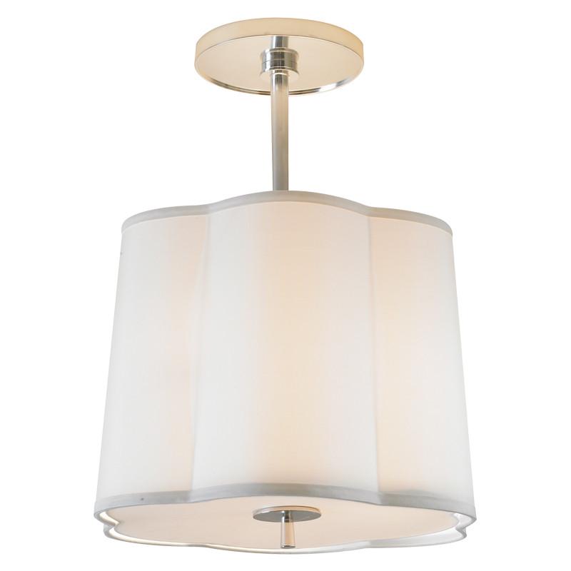 This simple scallop chandelier has a silk shade that will illuminate your space with a soft glow. We love its feminine shape and chain links in any finish!